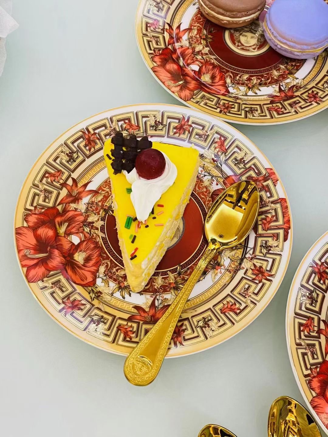 • AGG 베르사체 디저트 케이크 숫가락 접시 세트 4*4개 레드 꽃