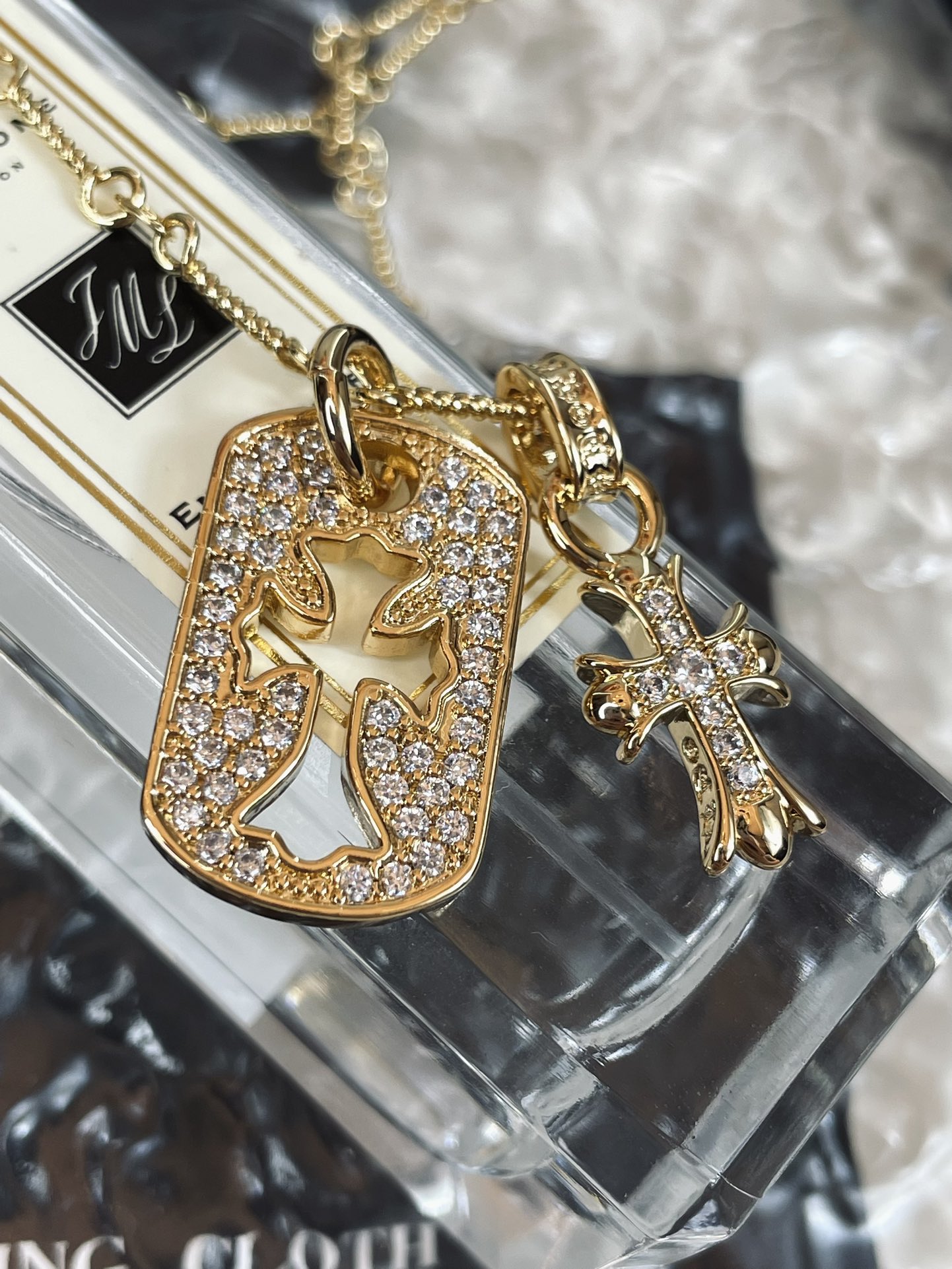 • AGG 크롬하츠 큐빅 2종 십자가 펜던트 목걸이 골드