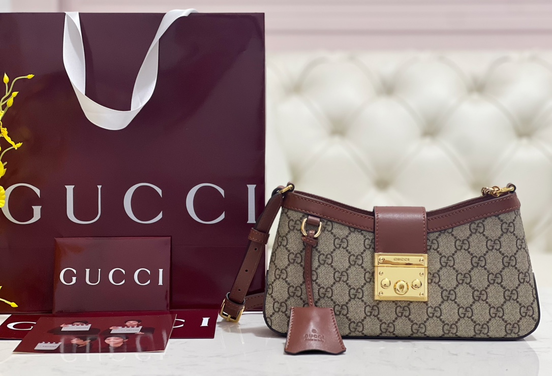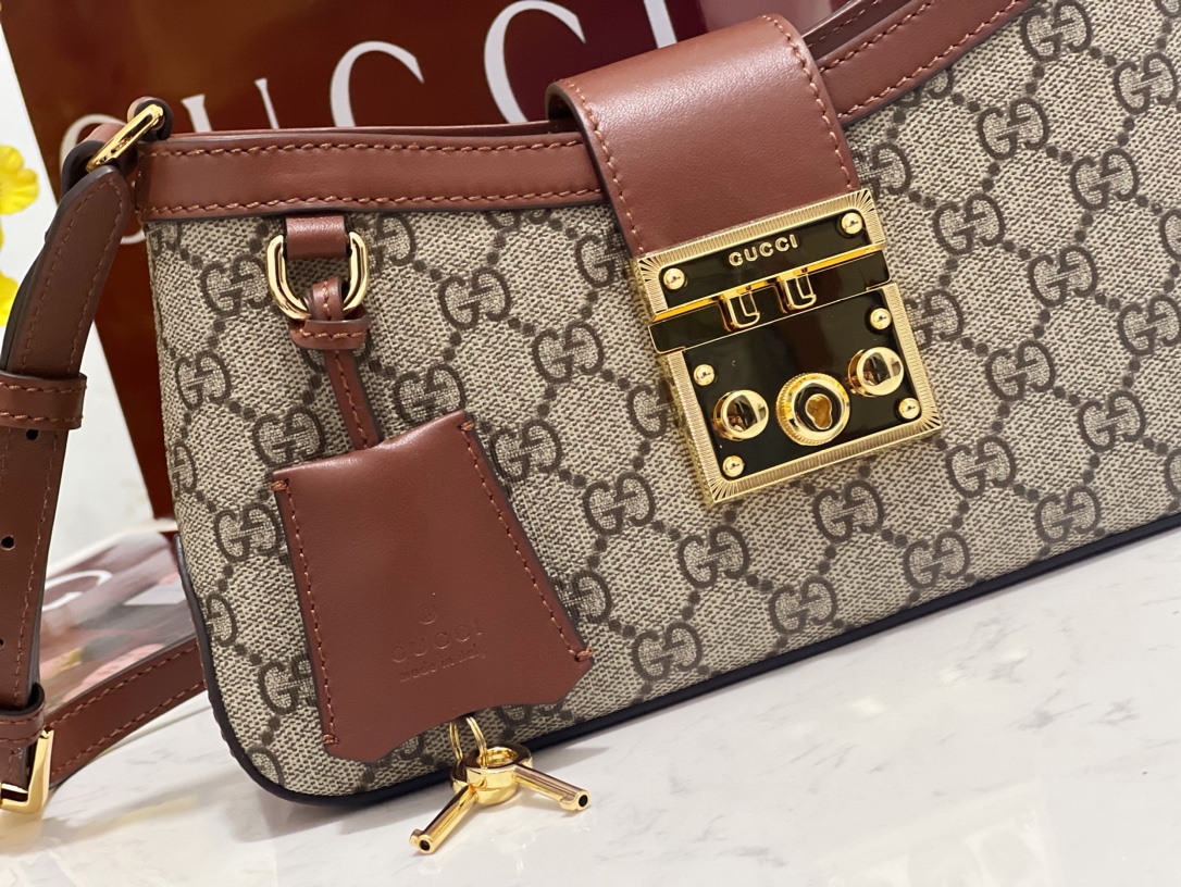 • [JHL] 구찌 패드락 스몰 숄더백 브라운 레더 811705 27*14*6cm