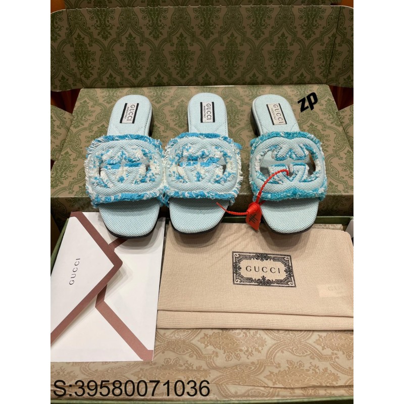 • [A1] 구찌 24SS GG 인터로킹 태슬 슬리퍼 라이트 스카이 블루 Gucci