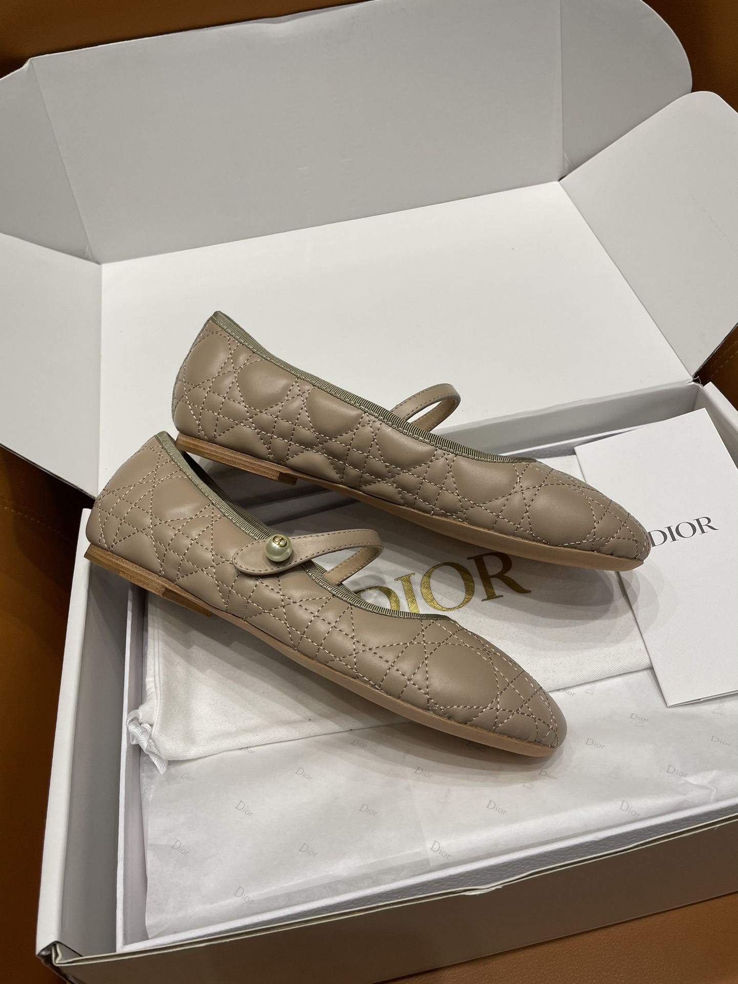 • [A1] 디올 24SS 양가죽 퀼팅 플랫 발레리나 슈즈 다크 베이지 Dior