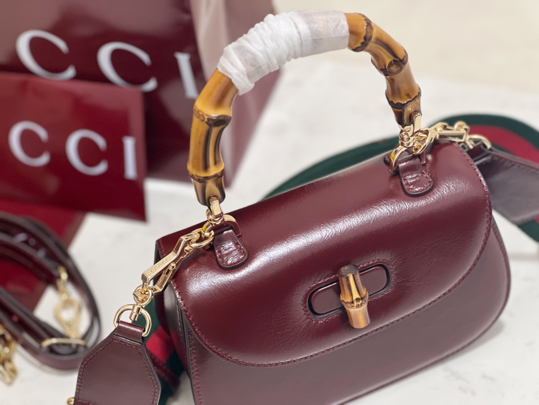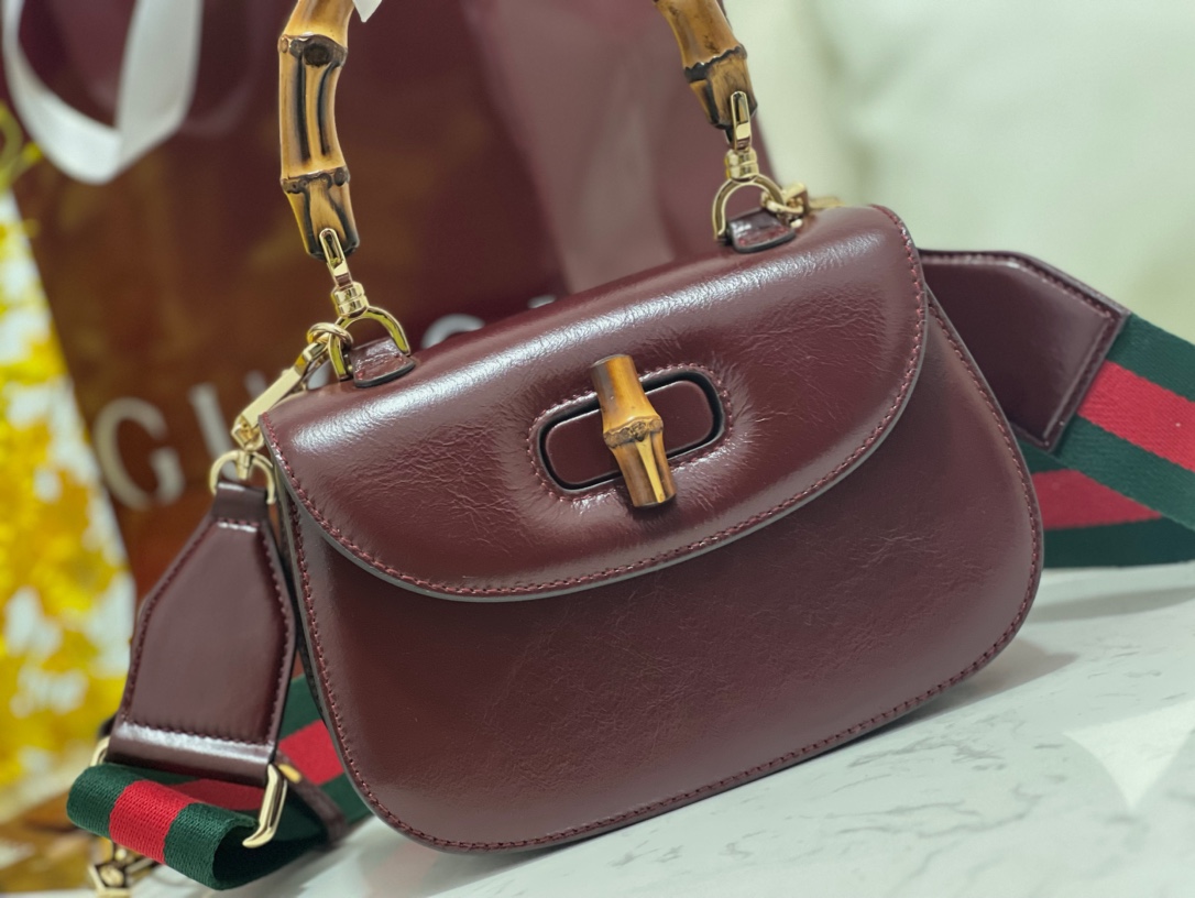 • [JHL] 구찌 뱀부 1947 스몰 탑 핸들백 675797 21*15*7cm 와인