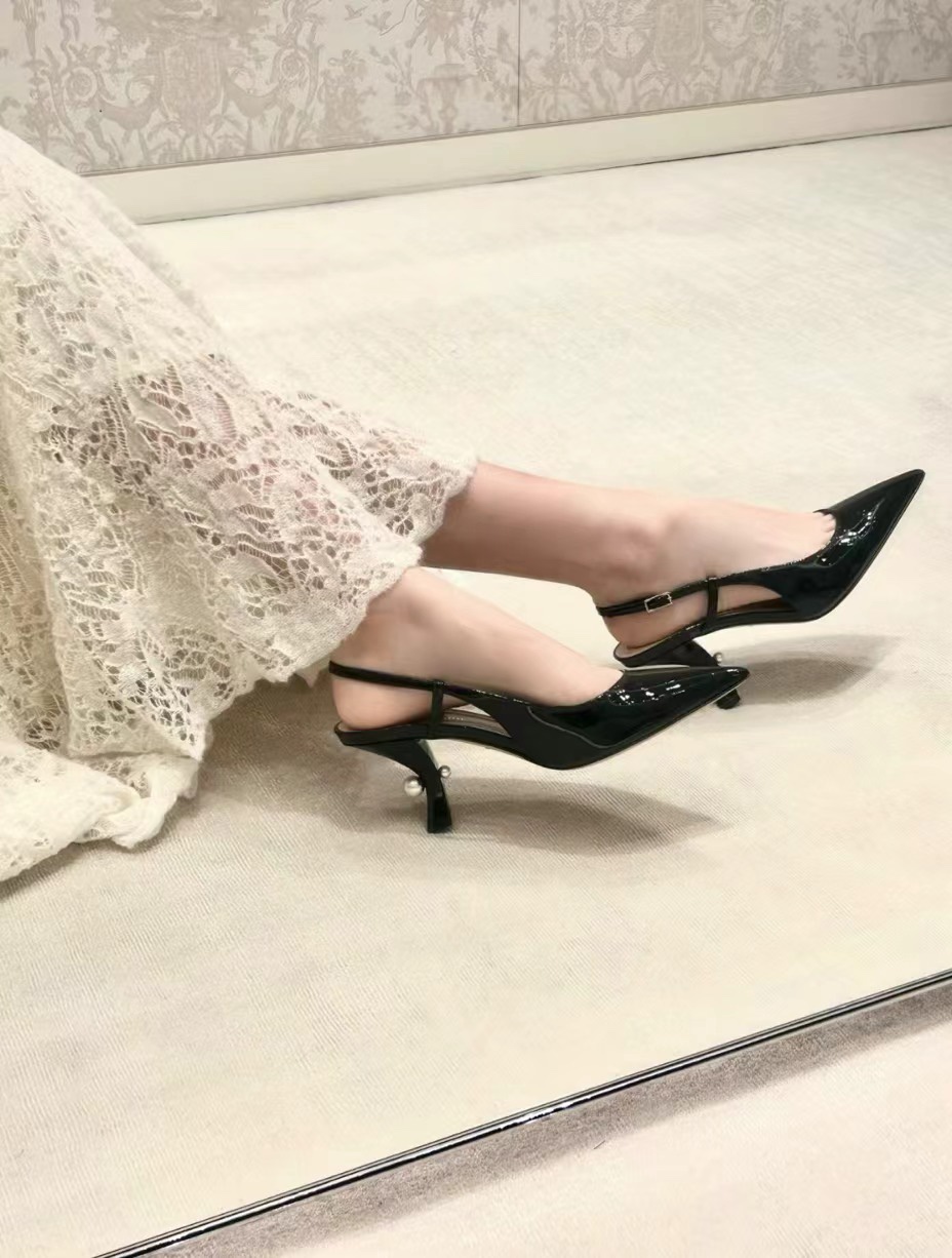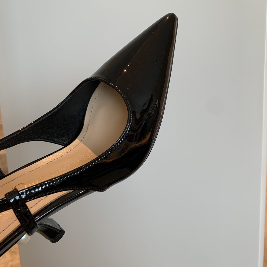 • [QR 5009] 디올 TribaIes 진주 펌프스 슬링백 힐 8cm 블랙 Dior