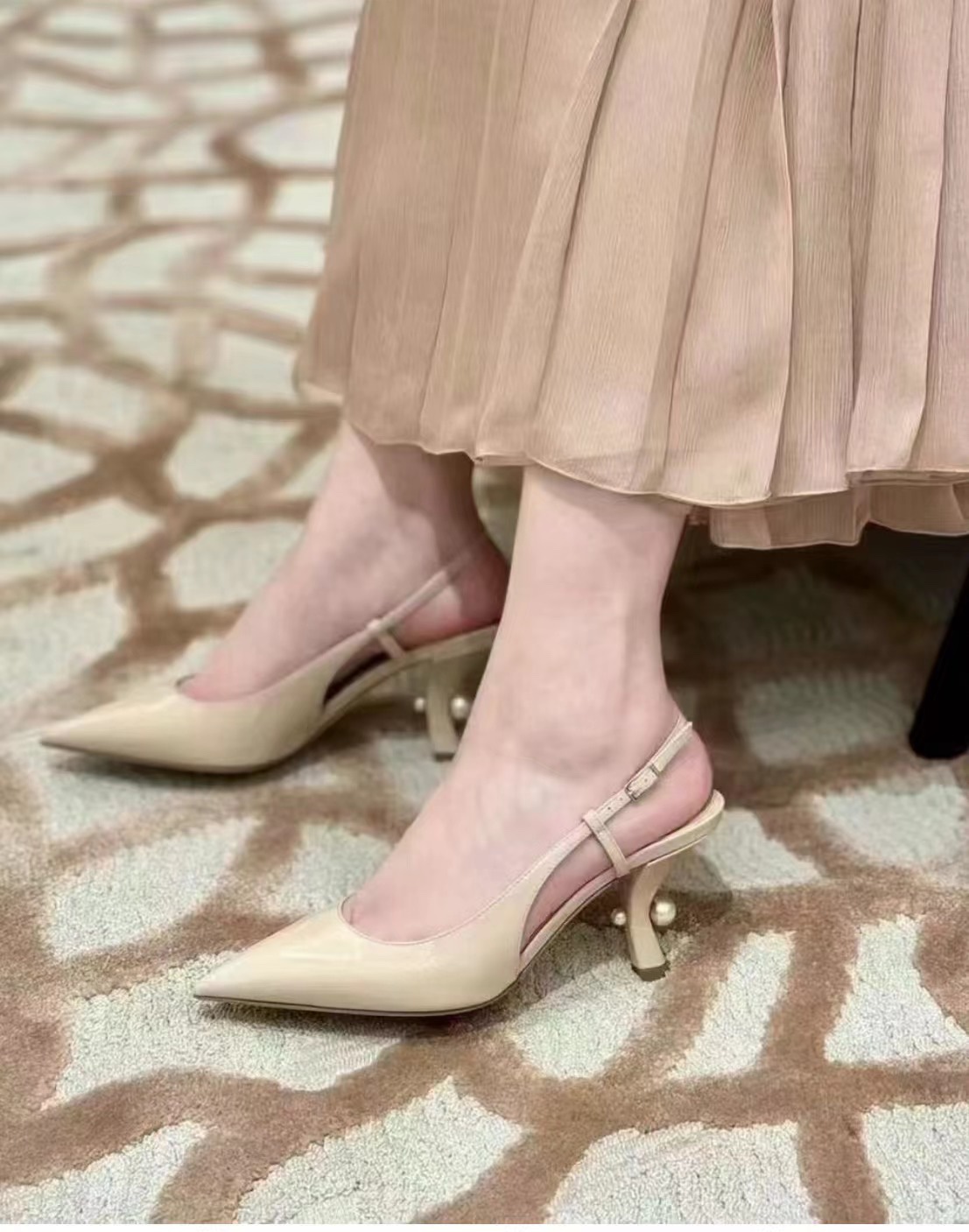 • [QR 5009] 디올 TribaIes 진주 펌프스 슬링백 힐 8cm 누드 Dior