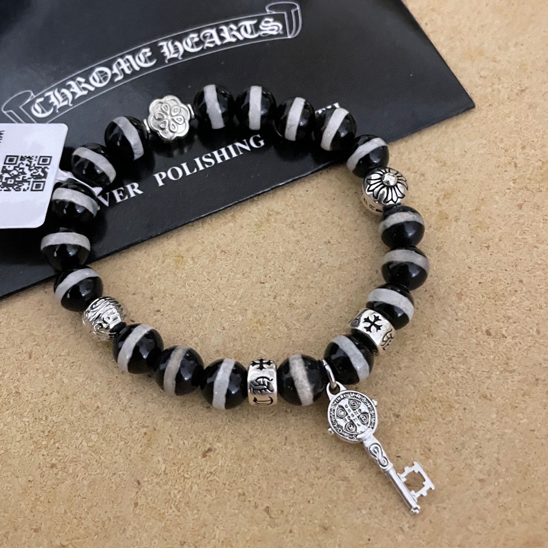 • AGG 크롬하츠 배색 구슬 키 팔찌 블랙