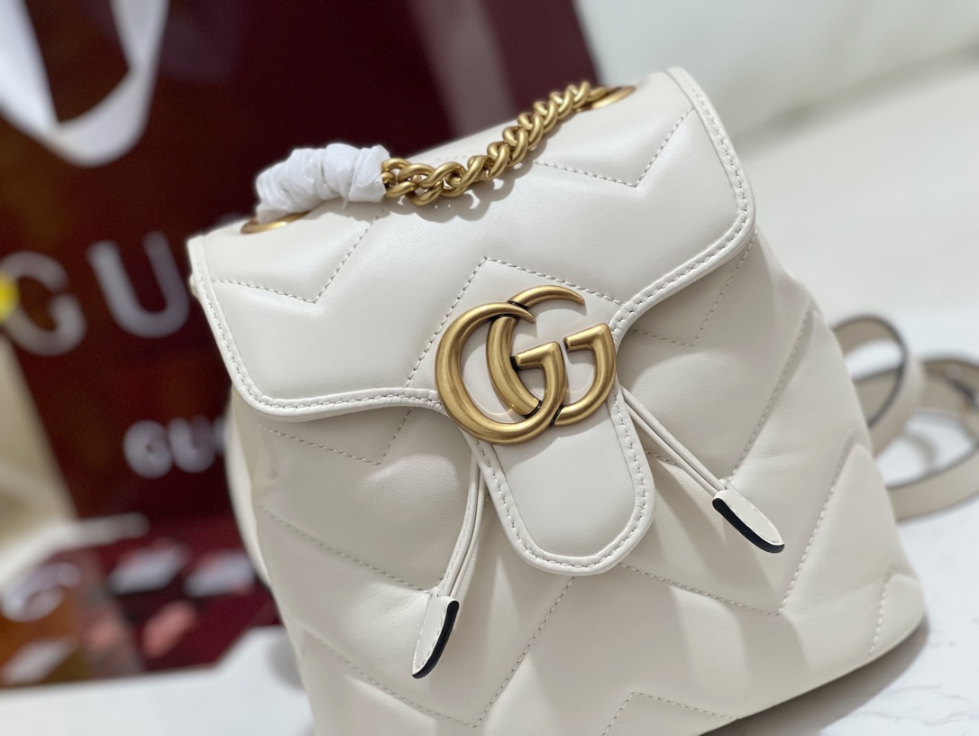 • [JHL] 구찌 GG 마몽 마틀라세 백팩 화이트 레더 777253 20*19*11cm