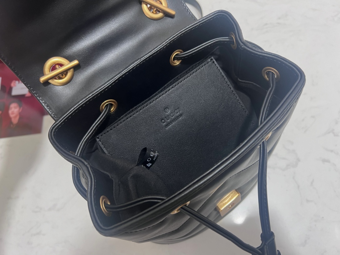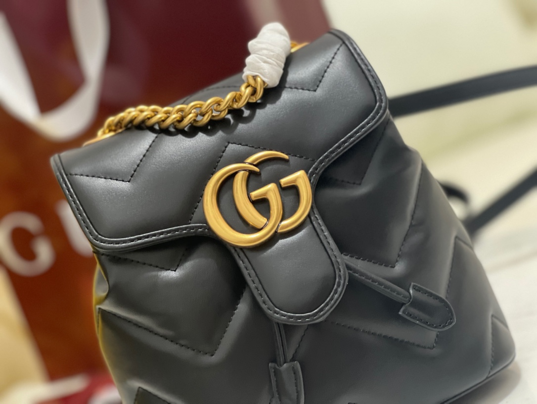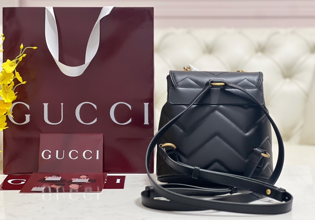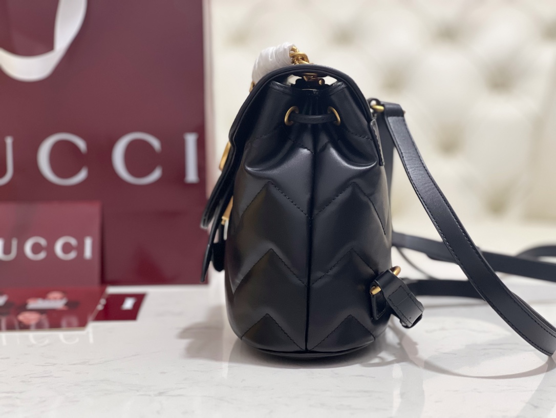 • [JHL] 구찌 GG 마몽 마틀라세 백팩 블랙 레더 777253 20*19*11cm