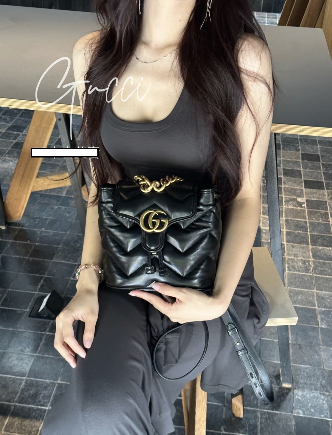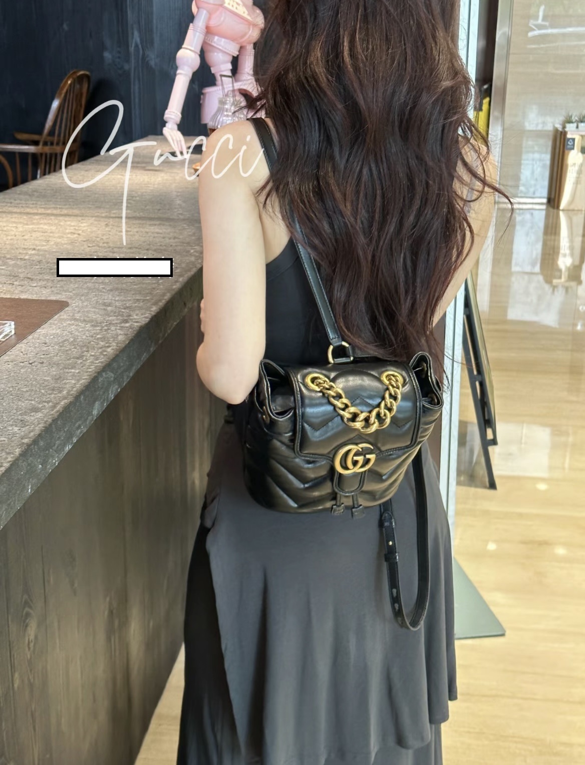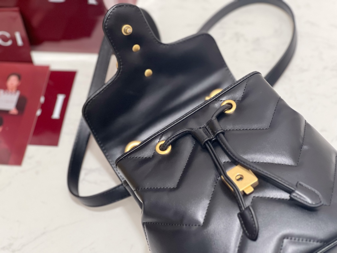 • [JHL] 구찌 GG 마몽 마틀라세 백팩 블랙 레더 777253 20*19*11cm