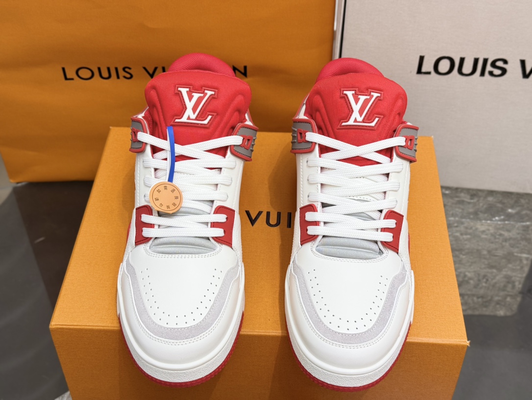 • [152] 루이비통 모노그램 LV 54# 트레이너 배색 스니커즈 레드 LOUIS VUITTON