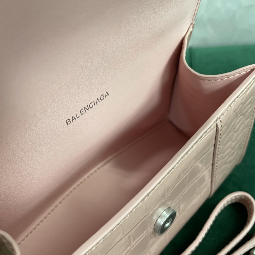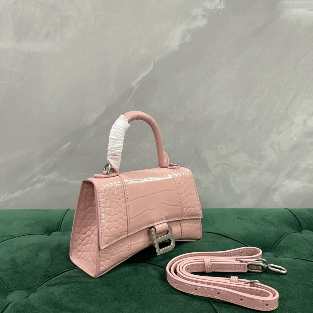 • [dxg] 발렌시아가 아워글래스 크로커다일 엠보싱 핸들백 악어무늬 19*13*8cm 핑크 빈티지 실버 장식