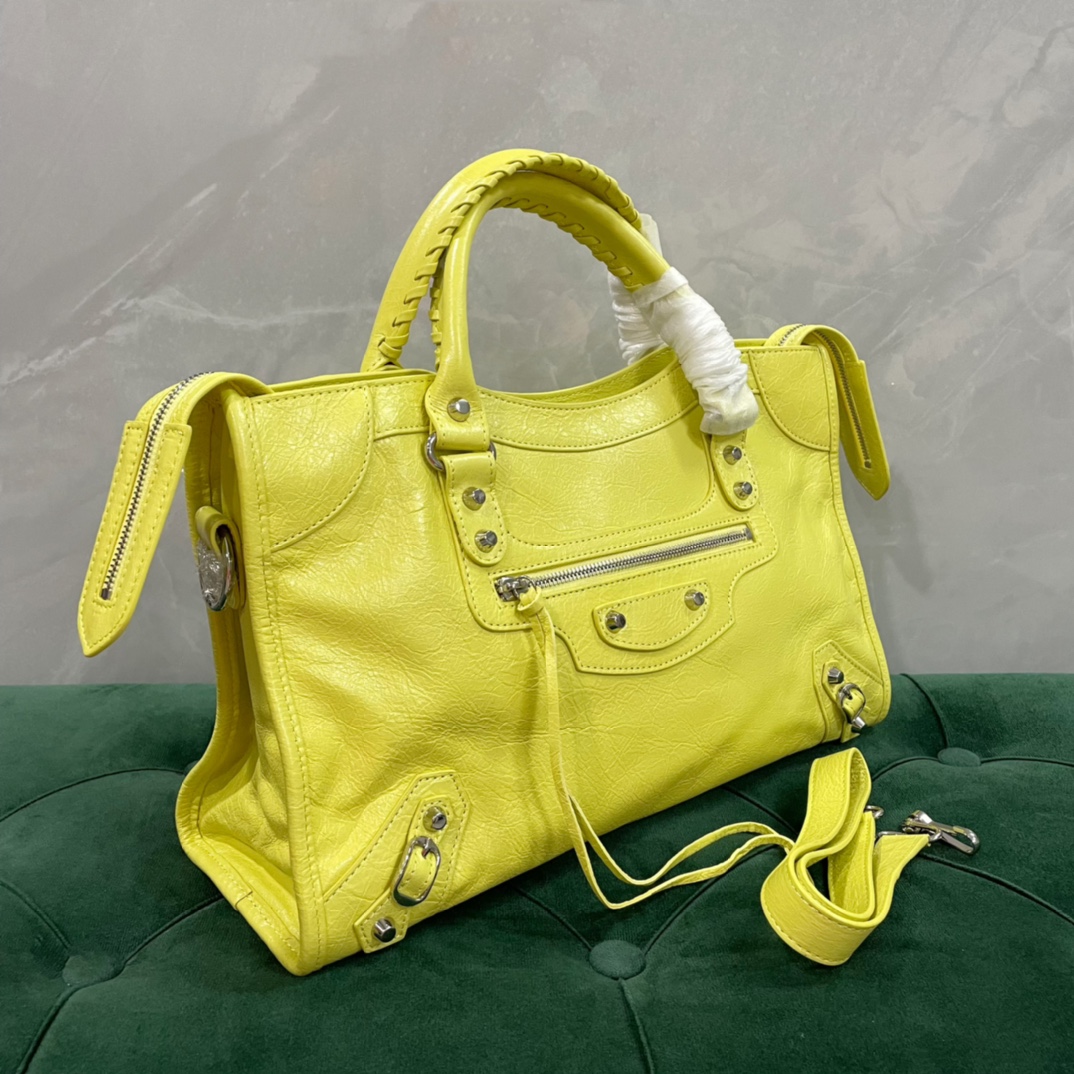 • [dxg] 발렌시아가 르 시티 라지 백 38*24*14cm 옐로우 샤이니 실버 장식