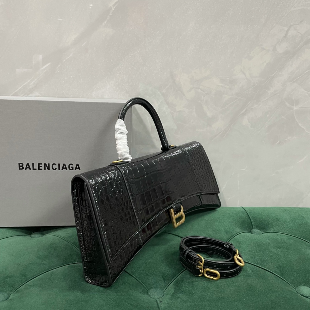 • [dxg] 발렌시아가 아워글래스 크로커다일 엠보싱 핸들백 악어무늬 6*15*35cm 블랙 빈티지 골드 장식