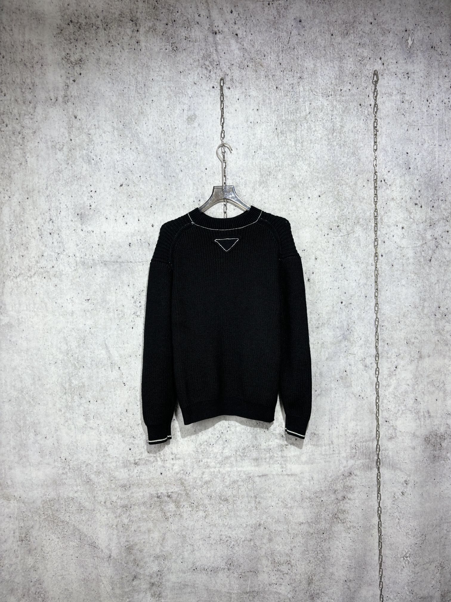 • [사슬공장] 프라다 23 앞 점보 모노그램 자카드 니트 블랙