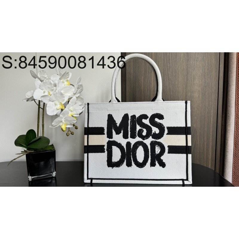 • [JHL] 디올 북 토트 미디엄 백 미스 디올 그래피티 자수 36.6*27*16.5cm 화이트