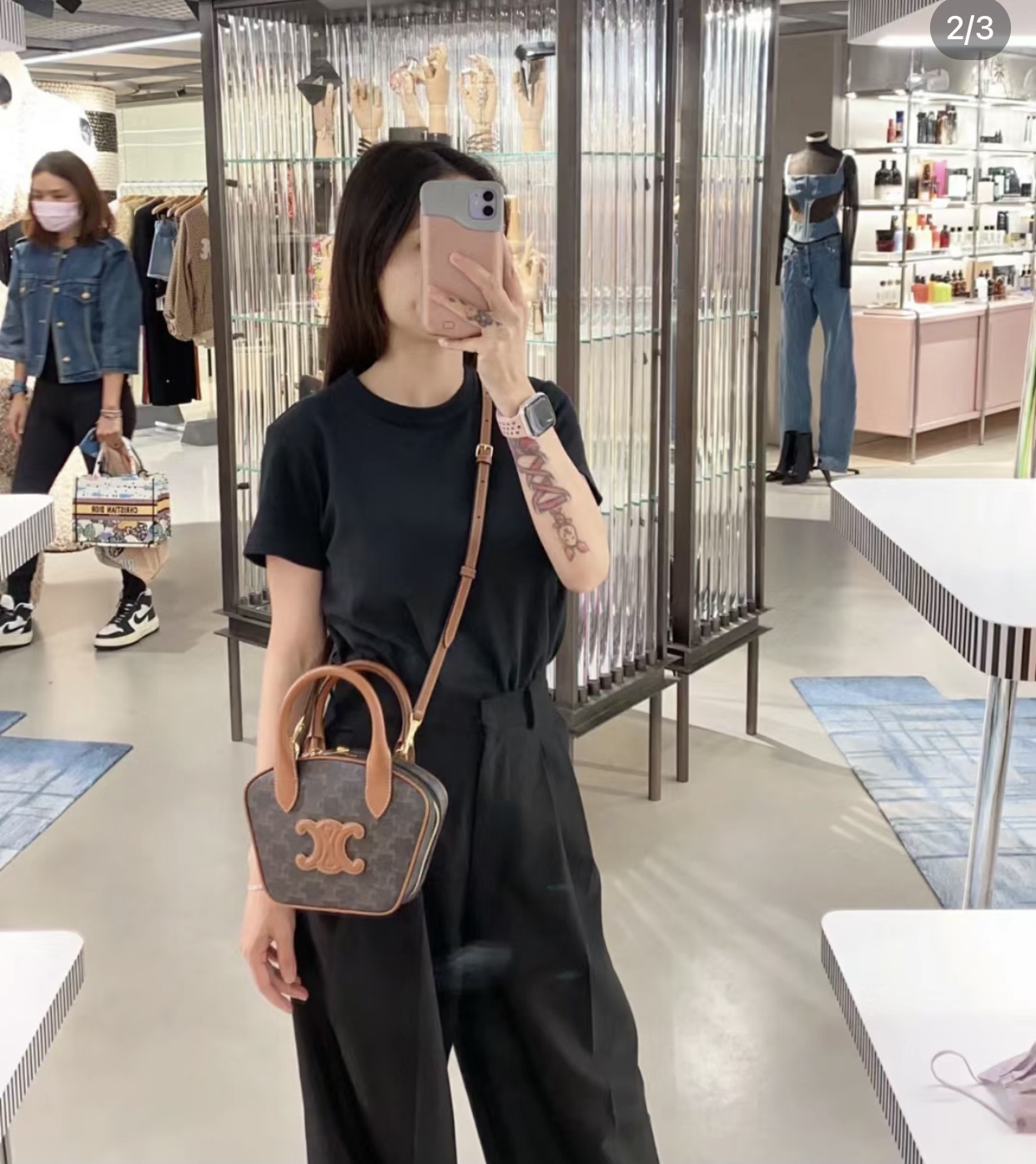 • JXG 셀린느 트리옹프 캔버스 카프스킨 미니 볼링백 탄 110462 20*15*5cm