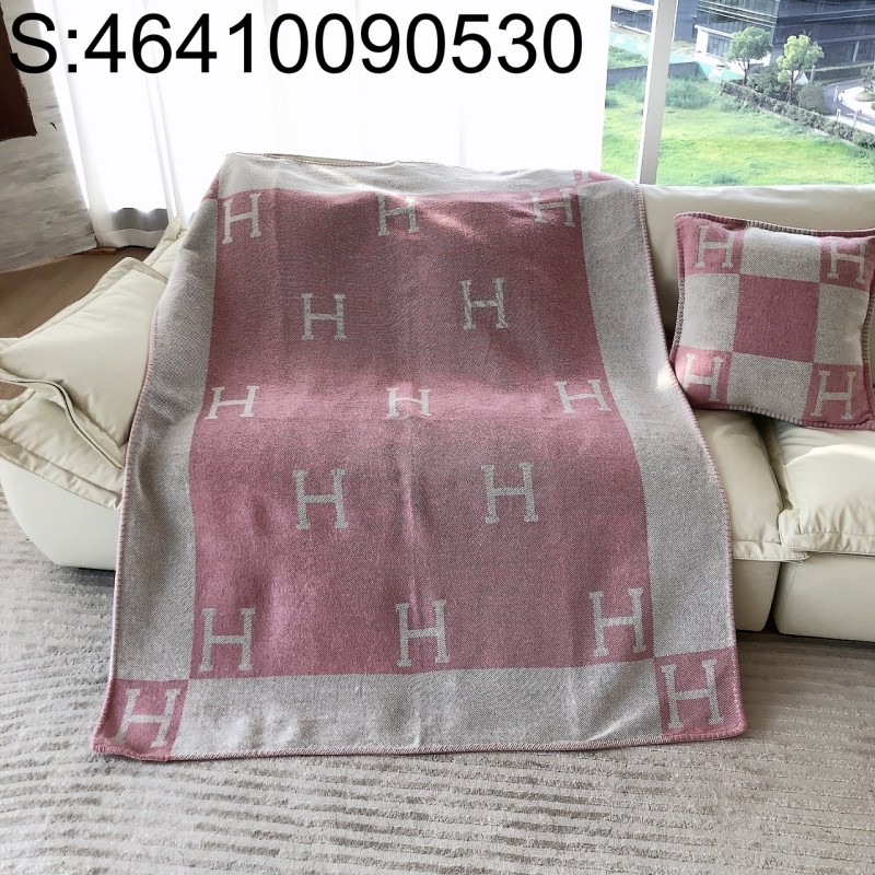 • AGG 에르메스 H로고 캐시미어 담요 170*135cm 핑크 Hermes