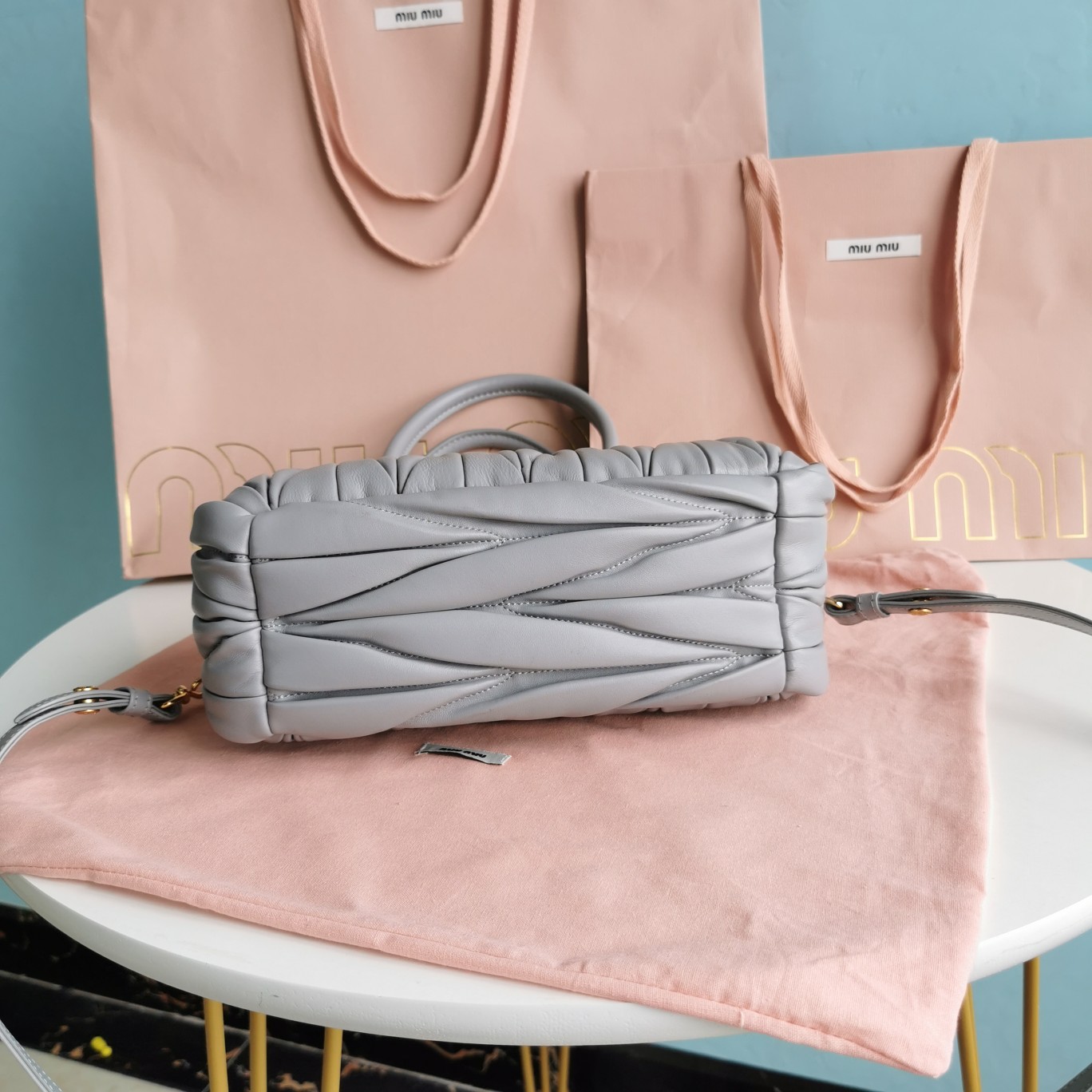 • [JHL] 미우미우 마테라쎄 벨 나파 가죽 핸드백 27*17*9cm 그레이