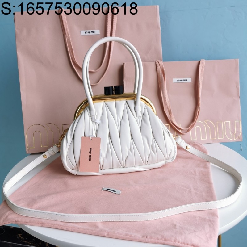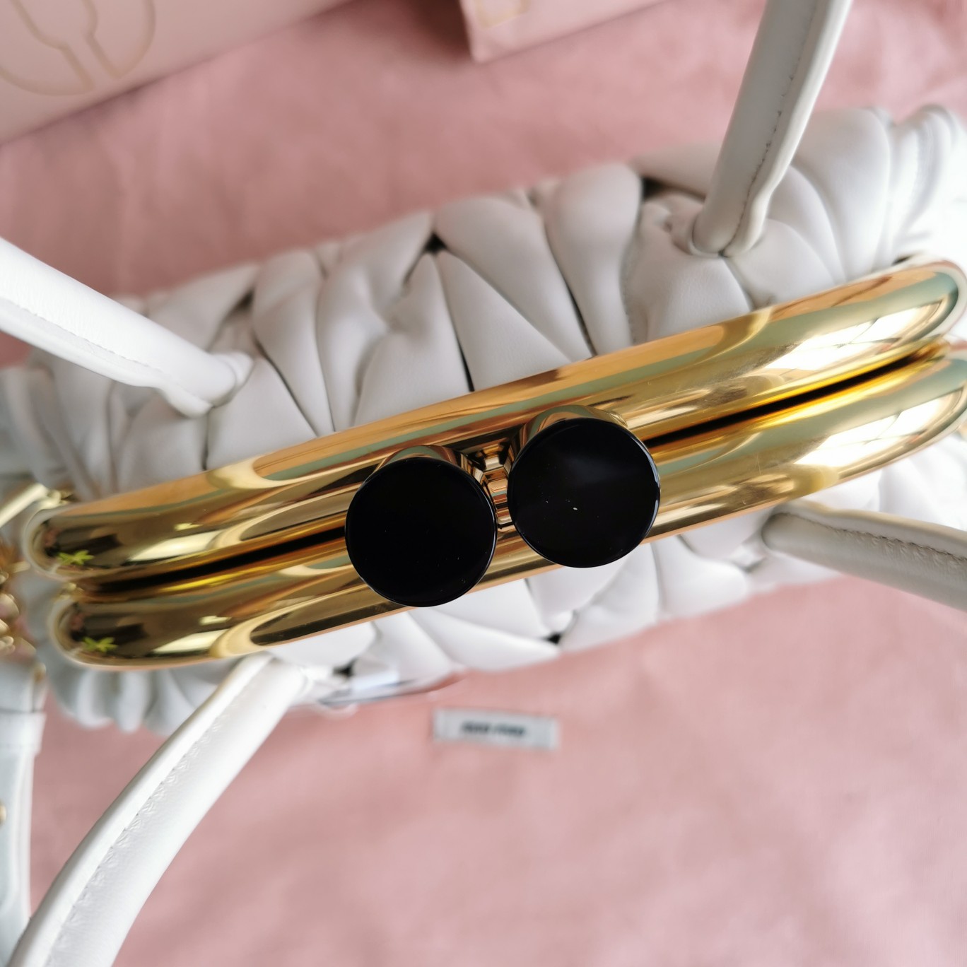 • [JHL] 미우미우 마테라쎄 벨 나파 가죽 핸드백 27*17*9cm 화이트