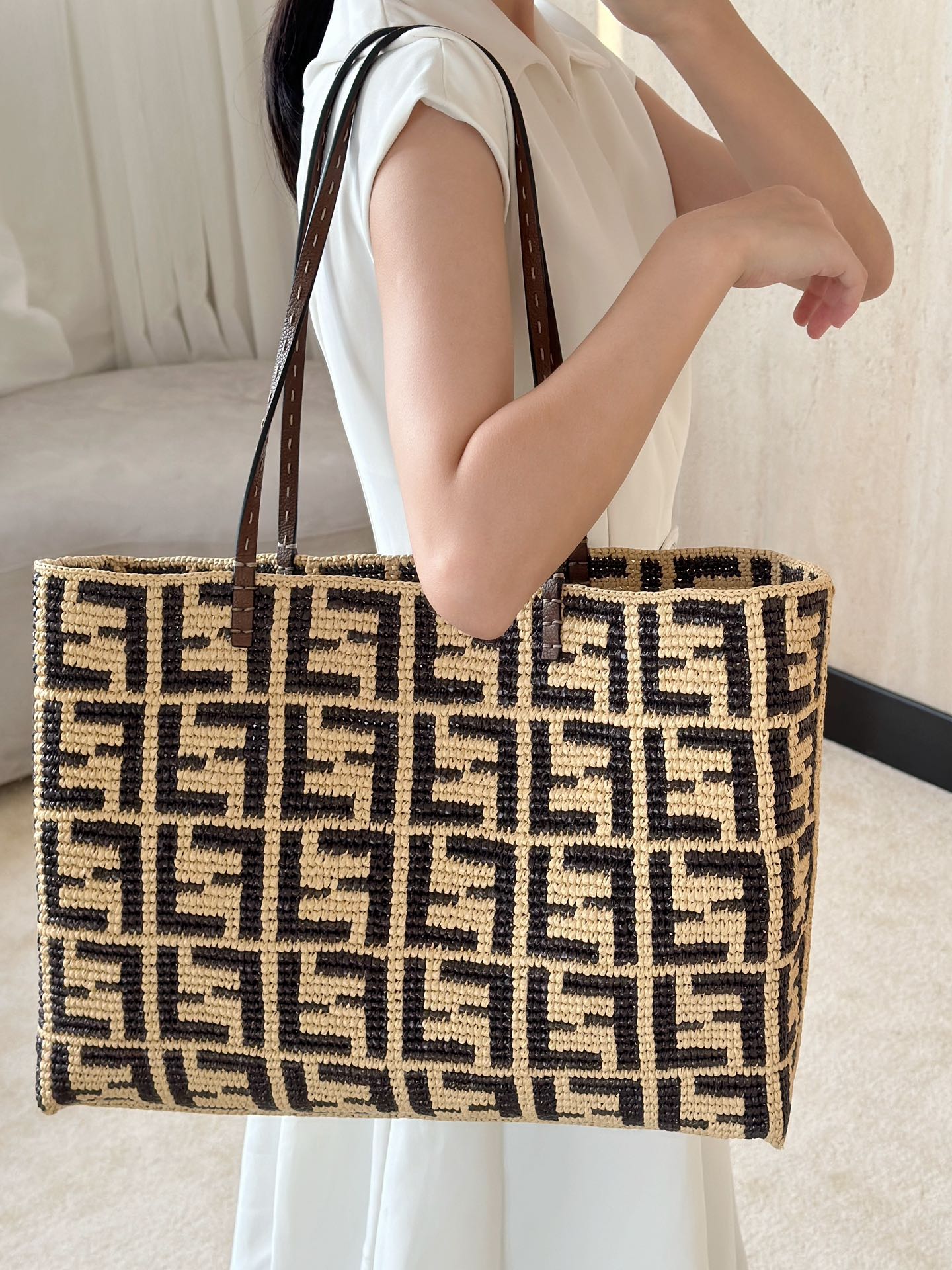 • [니콜] 펜디 롤 라피아 크로셰 쇼퍼백 35*19*31cm Fendi