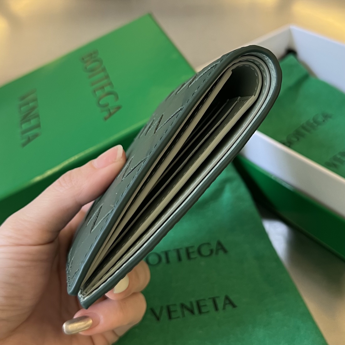 징 보테가베네타 편직 반지갑 605721 초록색 라이트 올리브 11.5*9.5cm bottegaveneta 요약정보 및 구매