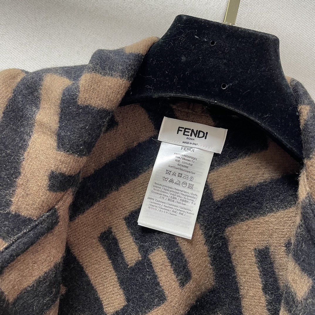 • AGG 펜디 FF로고 캐시미어 후드 케이프 브라운 Fendi