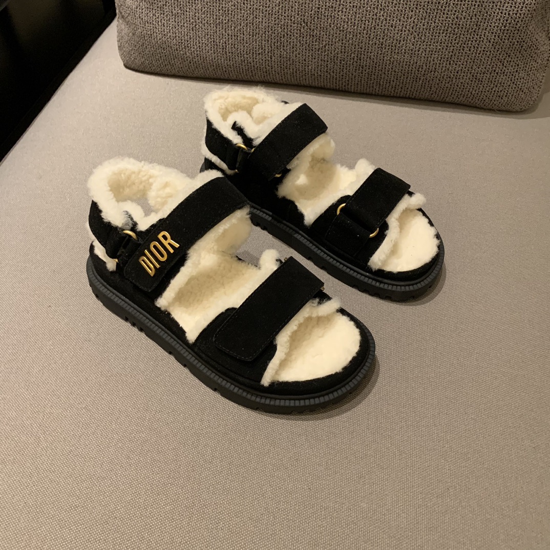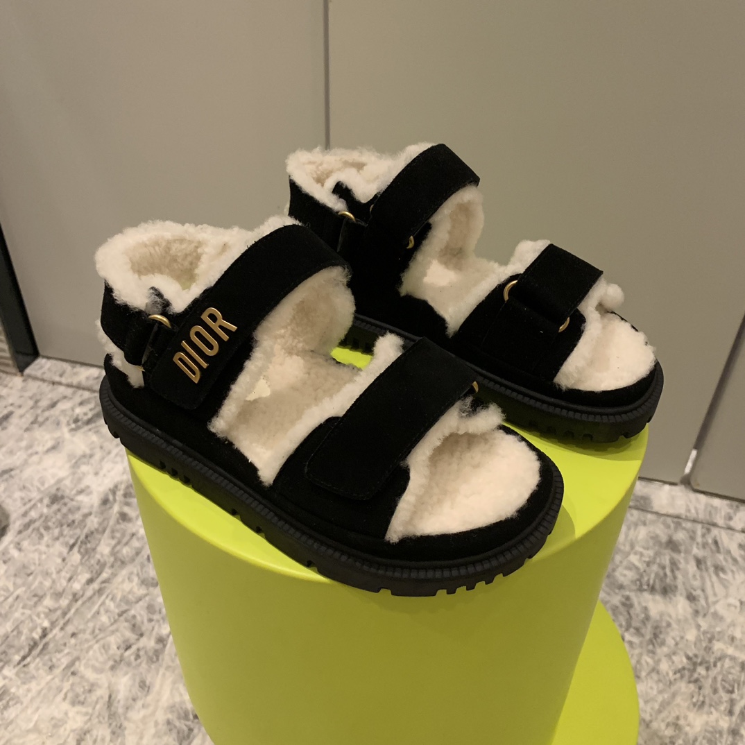 • [QR 5009] 디올 금장 양털 모피 샌들 블랙 Dior
