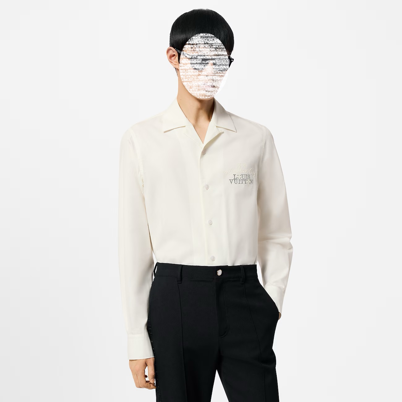 • [흰] 루이비통 37TH 큐빅 모노그램 긴팔 셔츠 아이보리 LOUIS VUITTON