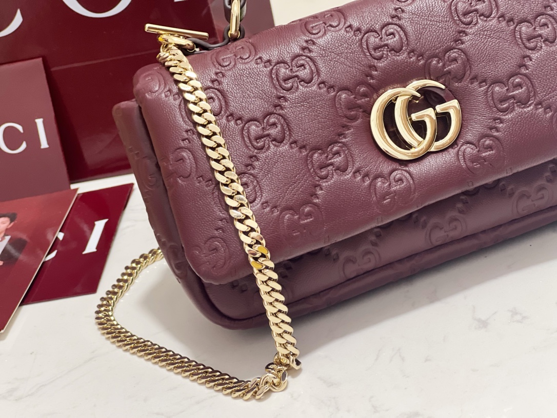• [JHL] 구찌 엠보 로고 밀라노 GG 탑 핸들백 806017 21*12.5*4.5cm 와인