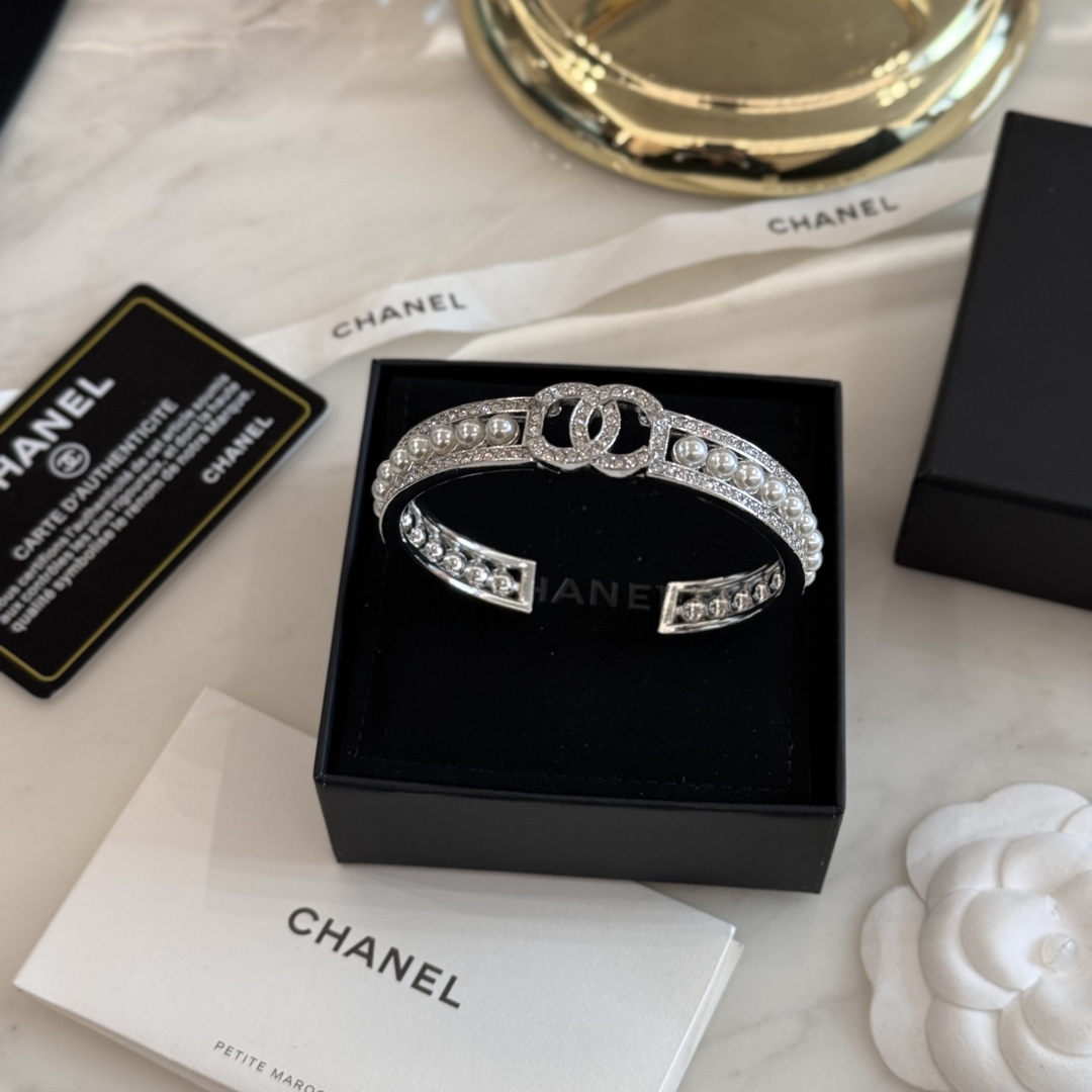 • AGG 샤넬 CC로고 펄 큐빅 팔찌 Chanel