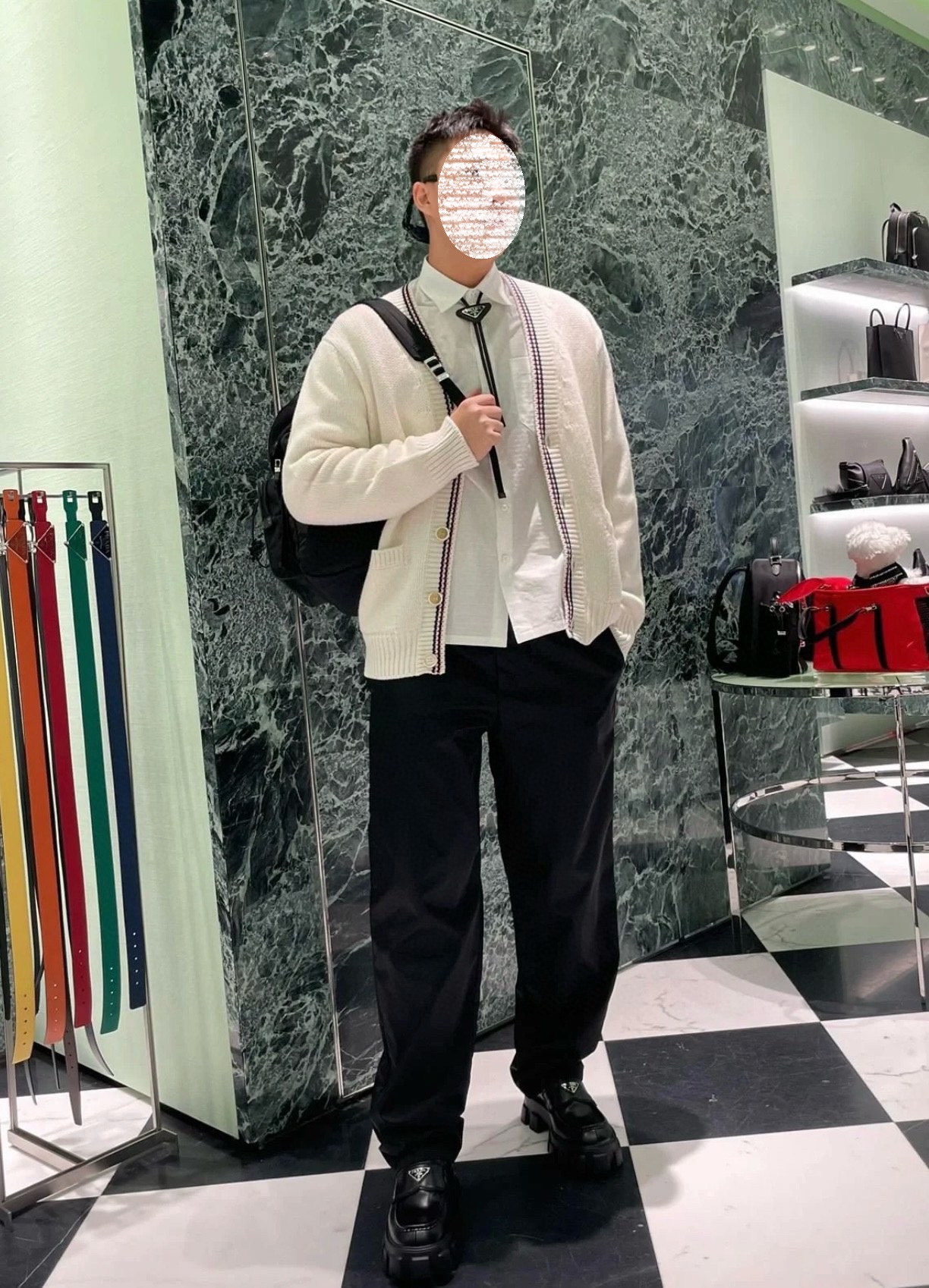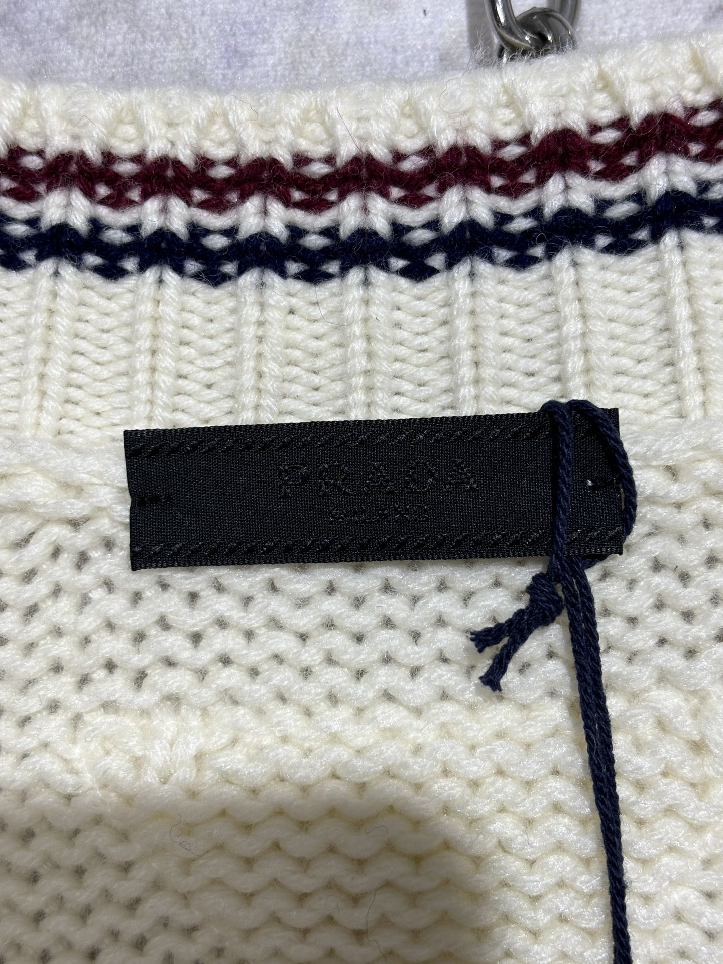 • [사슬공장] 프라다 V넥 순색 가디건 화이트 Prada