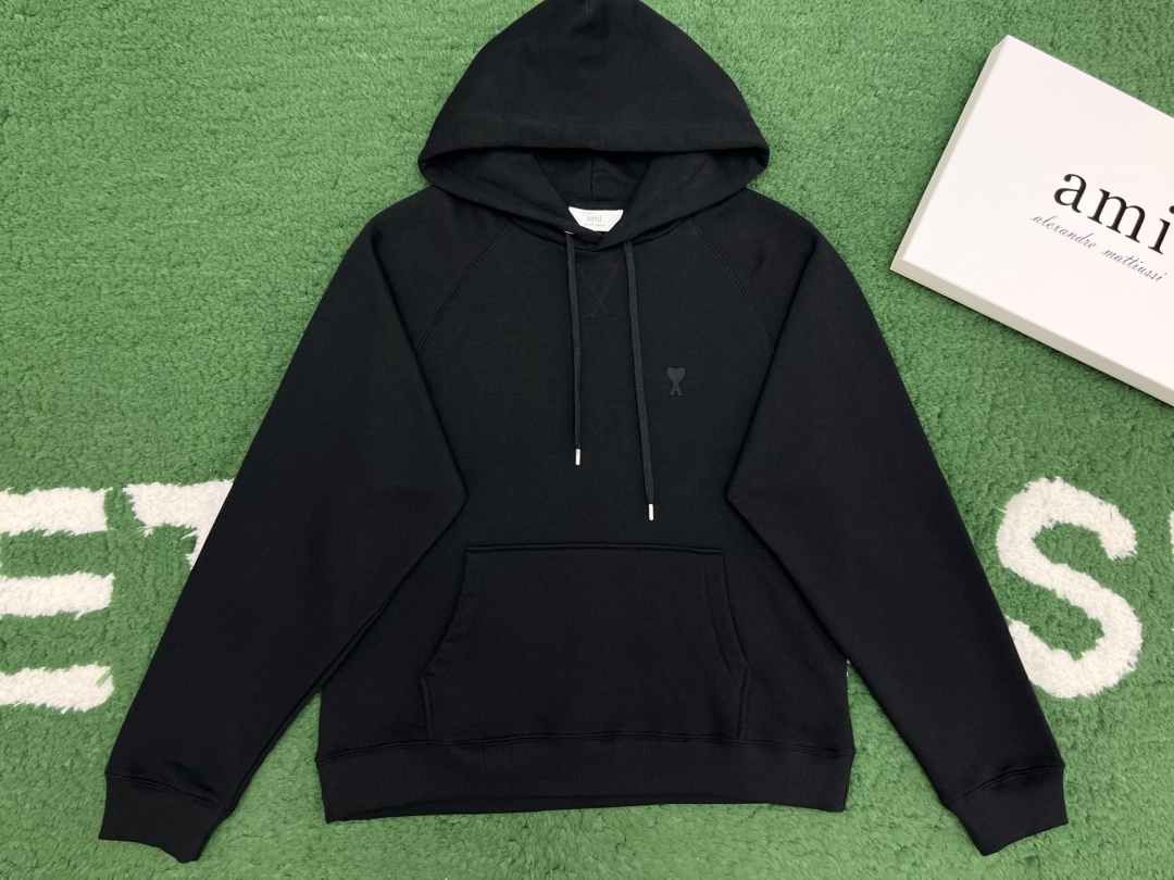 [잔디집1] 아미 스몰 로고 순색 후드티 블랙