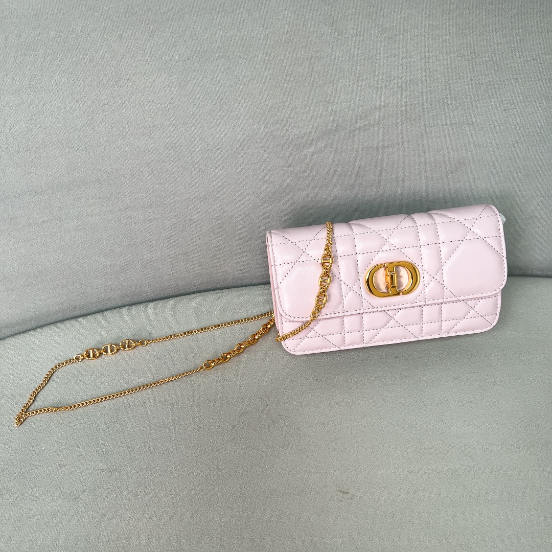 • [JHL] 디올 미스 카로 파우치 체인 매크로까나쥬 램스킨 파우더 핑크 20*11.5*3.5cm