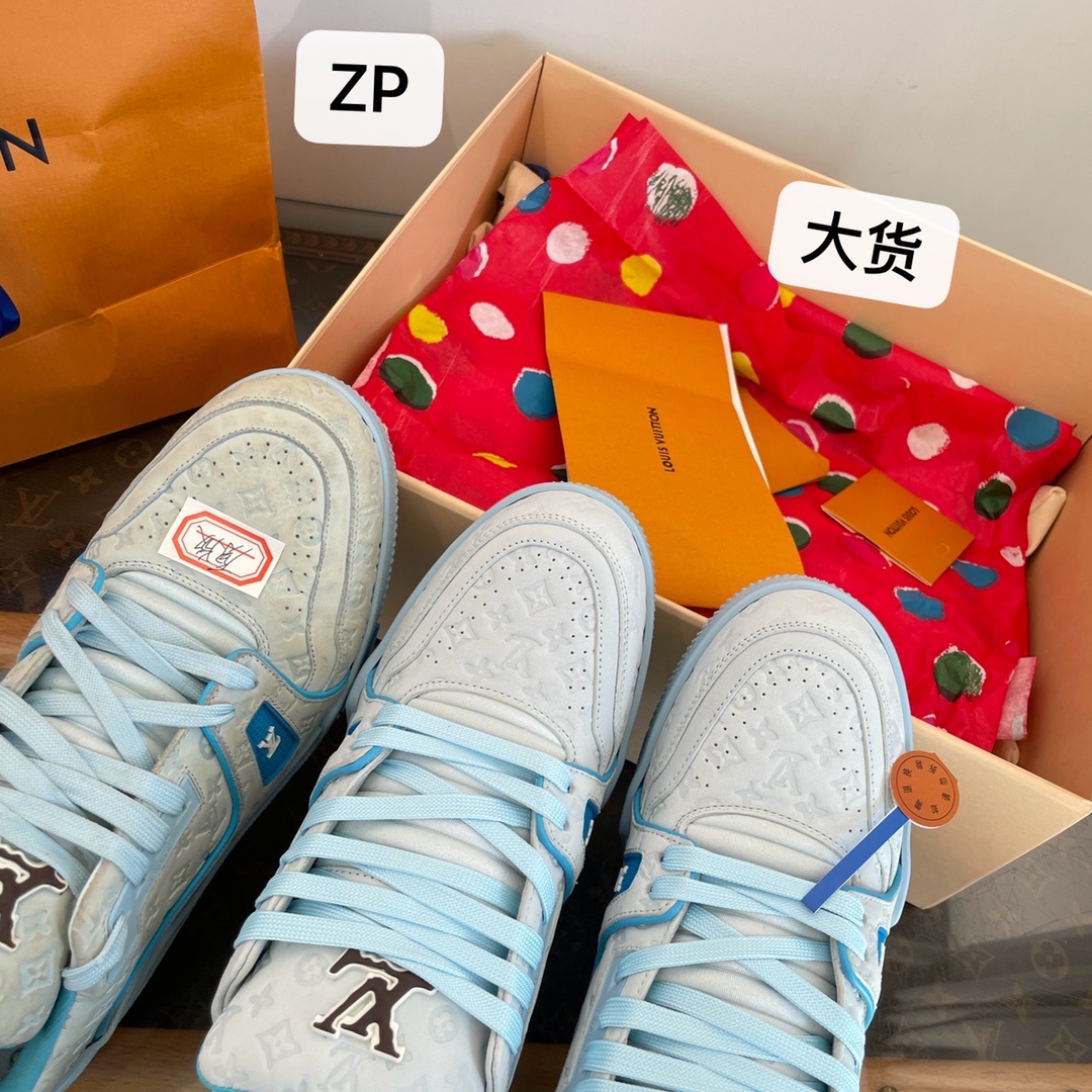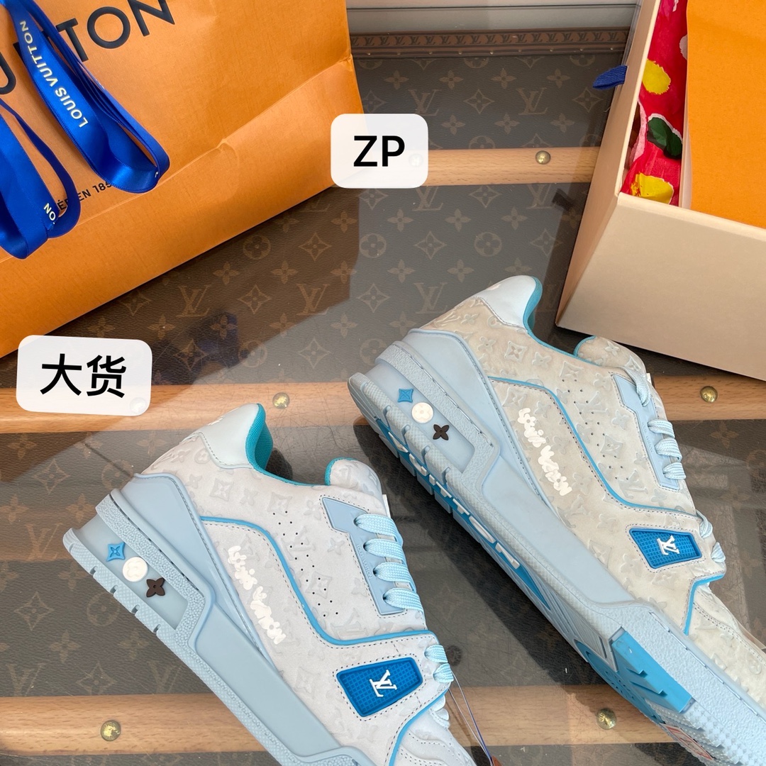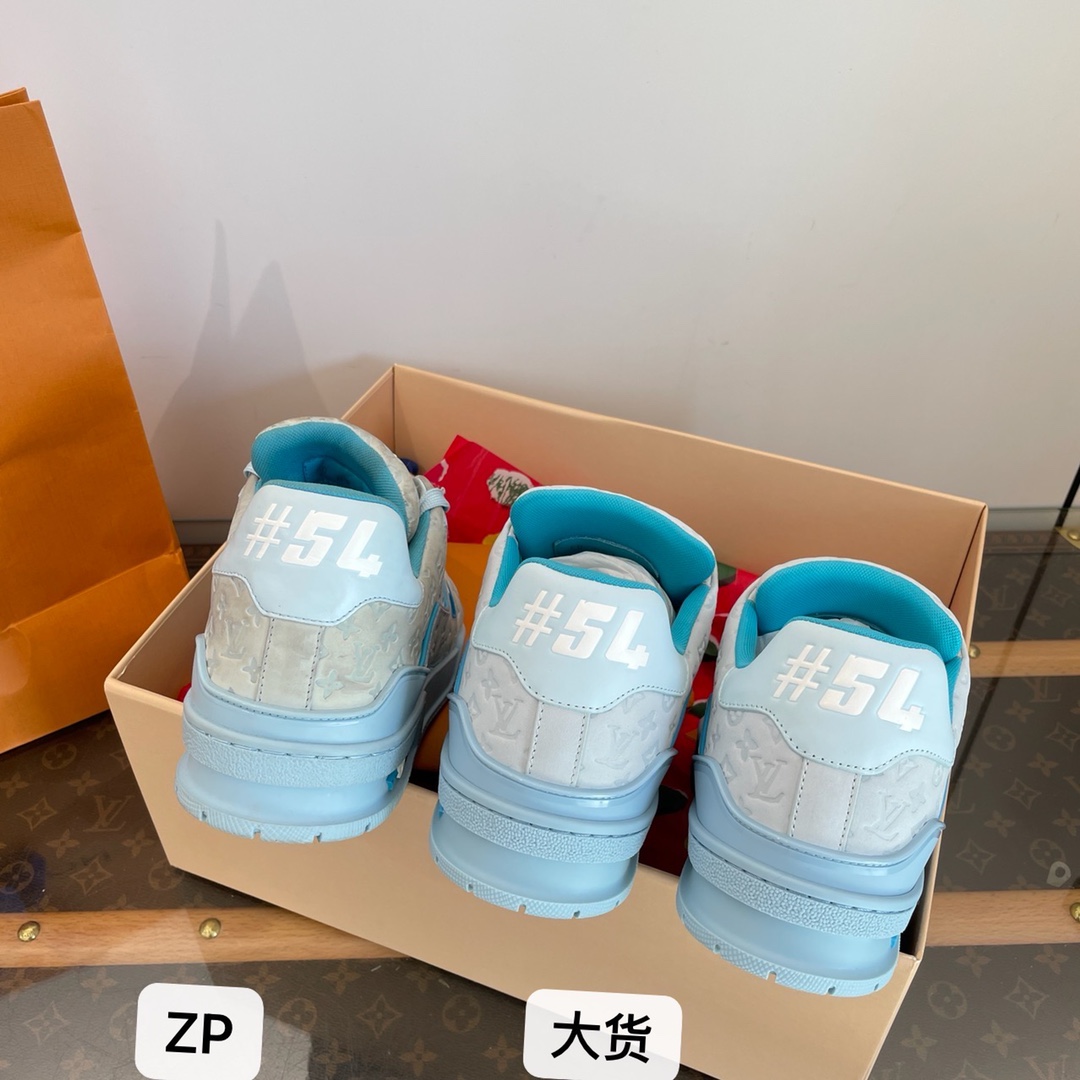 • [DXJ] 루이비통 가죽 54# 각인 모노그램 스니커즈 스카이 블루 LOUIS VUITTON