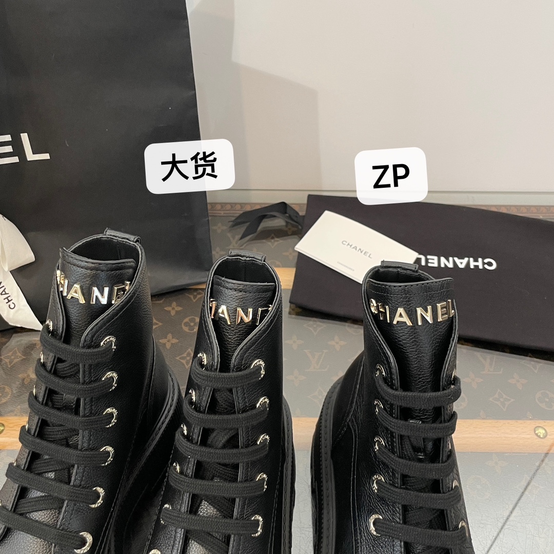 • [A1] 샤넬 레더 CC 로고 레이스업 워커 부츠 Chanel