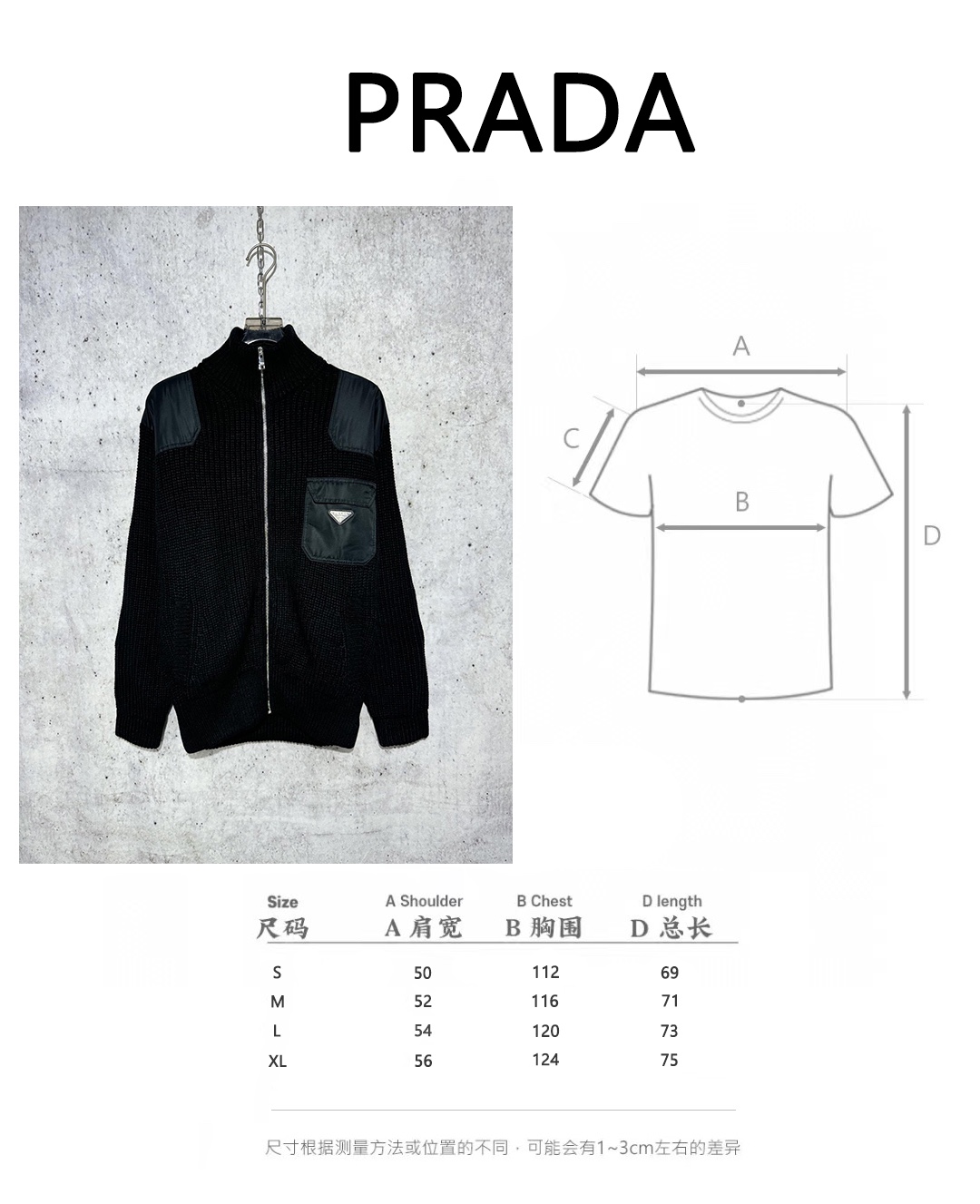 • [사슬공장] 프라다 삼각 로고 이음 지퍼 가디건 블랙 Prada