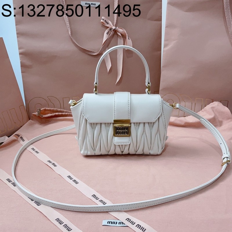 • [JHL] 미우미우 마테라쎄 나파 레더 핸드백 17*12.5*7cm 5BP0 화이트