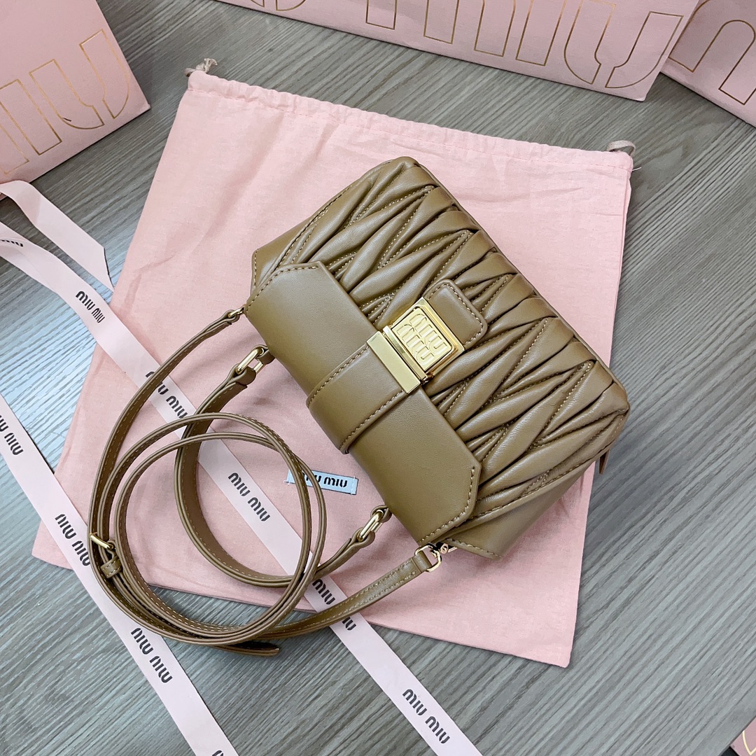 • [JHL] 미우미우 마테라쎄 나파 레더 핸드백 17*12.5*7cm 5BP0 커피