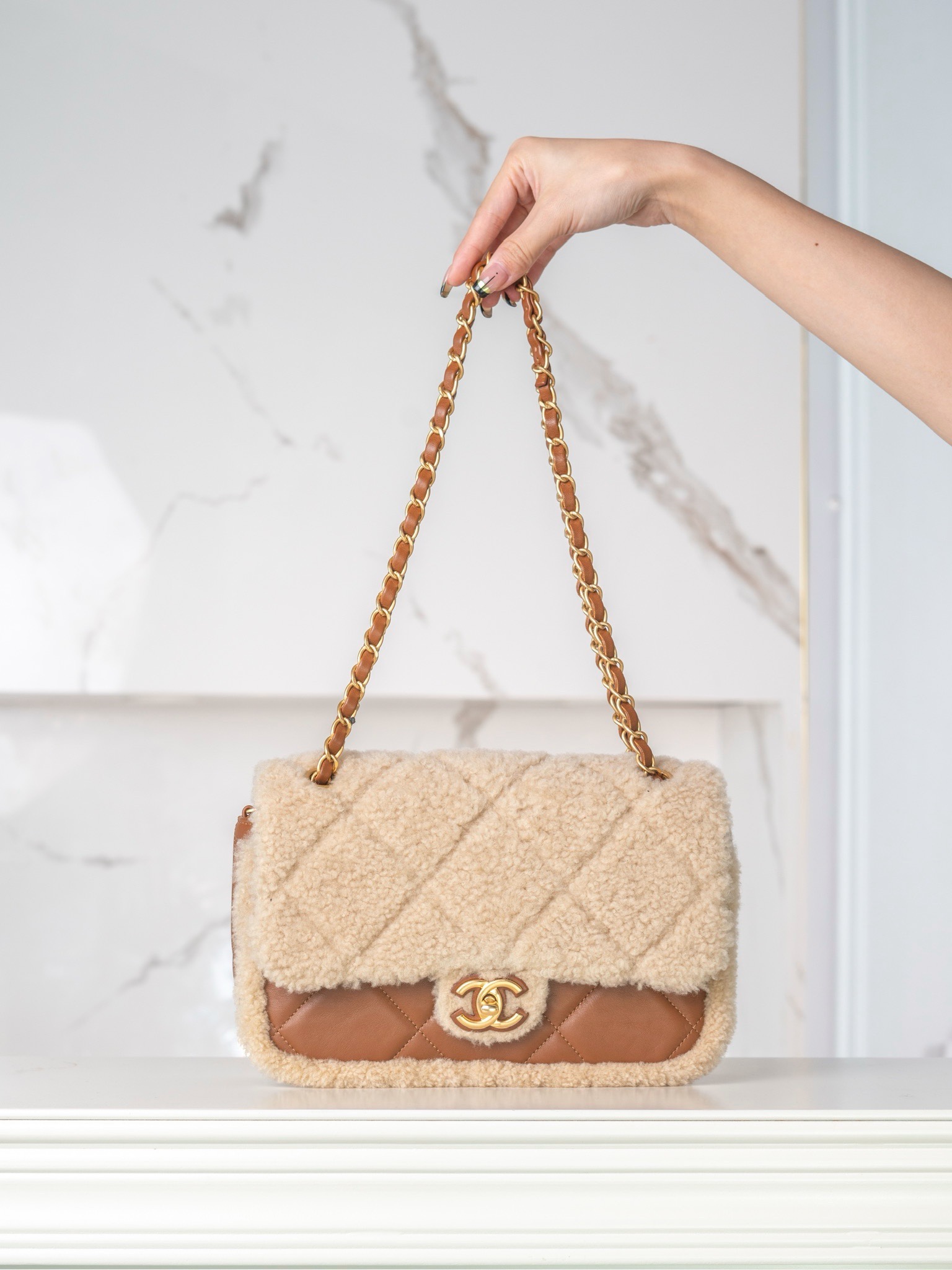 [JD] 샤넬 플랩백 시어링 램스킨 골드 메탈 베이지 브라운 24K CF 라지 16*23.5*7.5cm 요약정보 및 구매