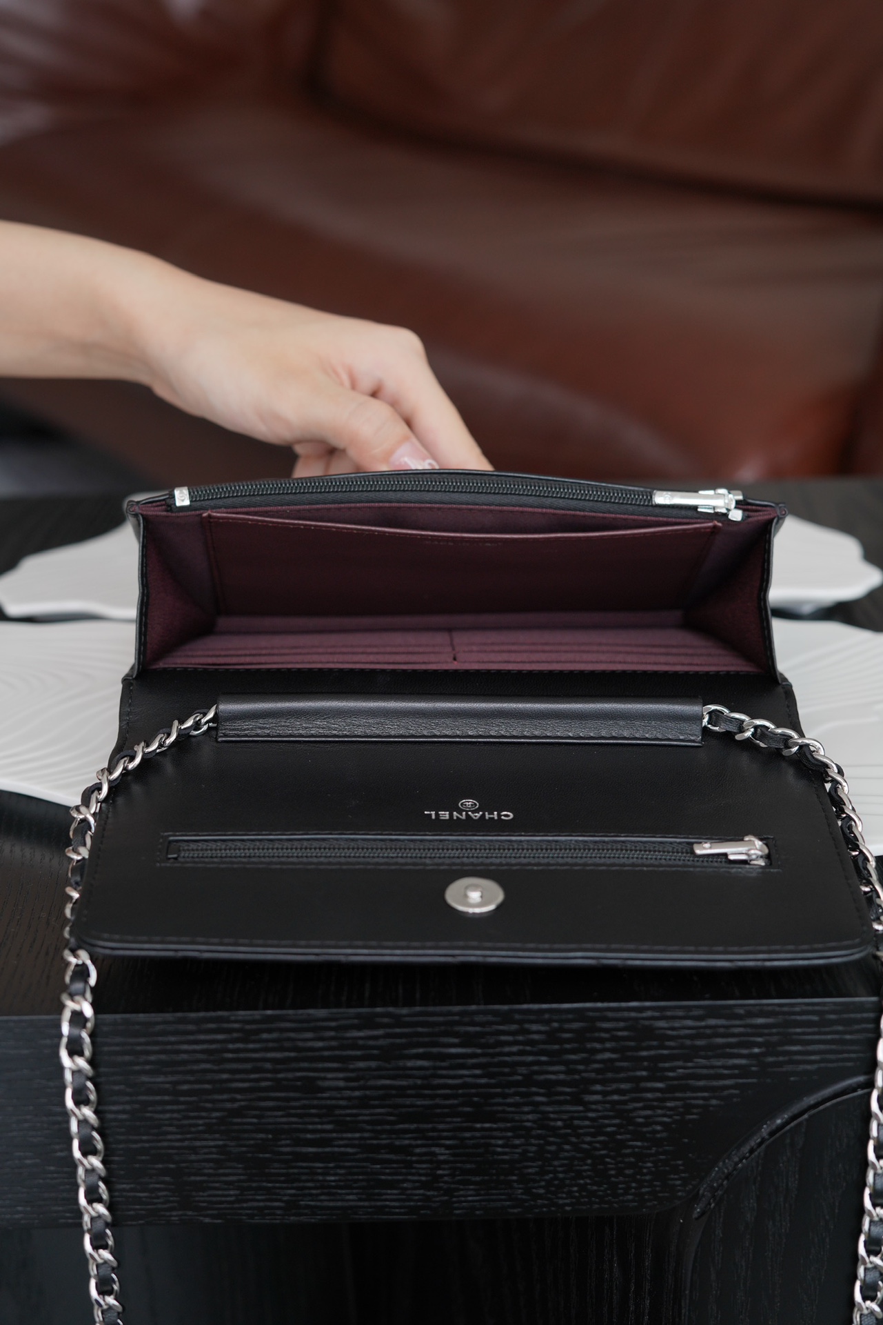 • [JD] 샤넬 클래식 체인 지갑 램스킨 실버 메탈 19cm 블랙 WOC
