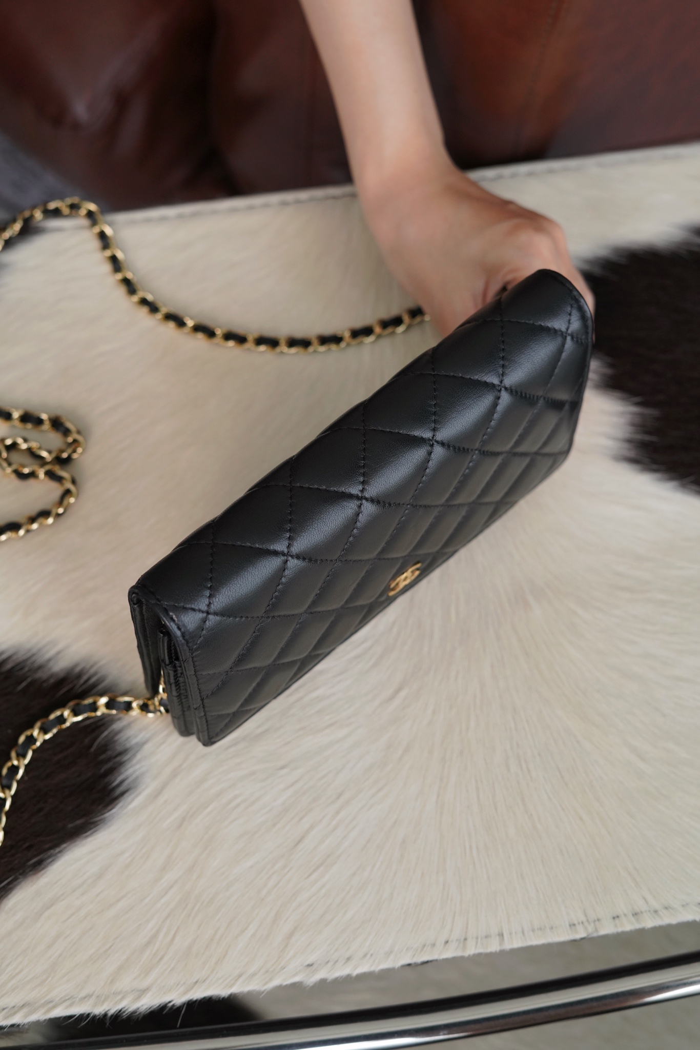 • [JD] 샤넬 클래식 체인 지갑 램스킨 골드 메탈 19cm 블랙 WOC