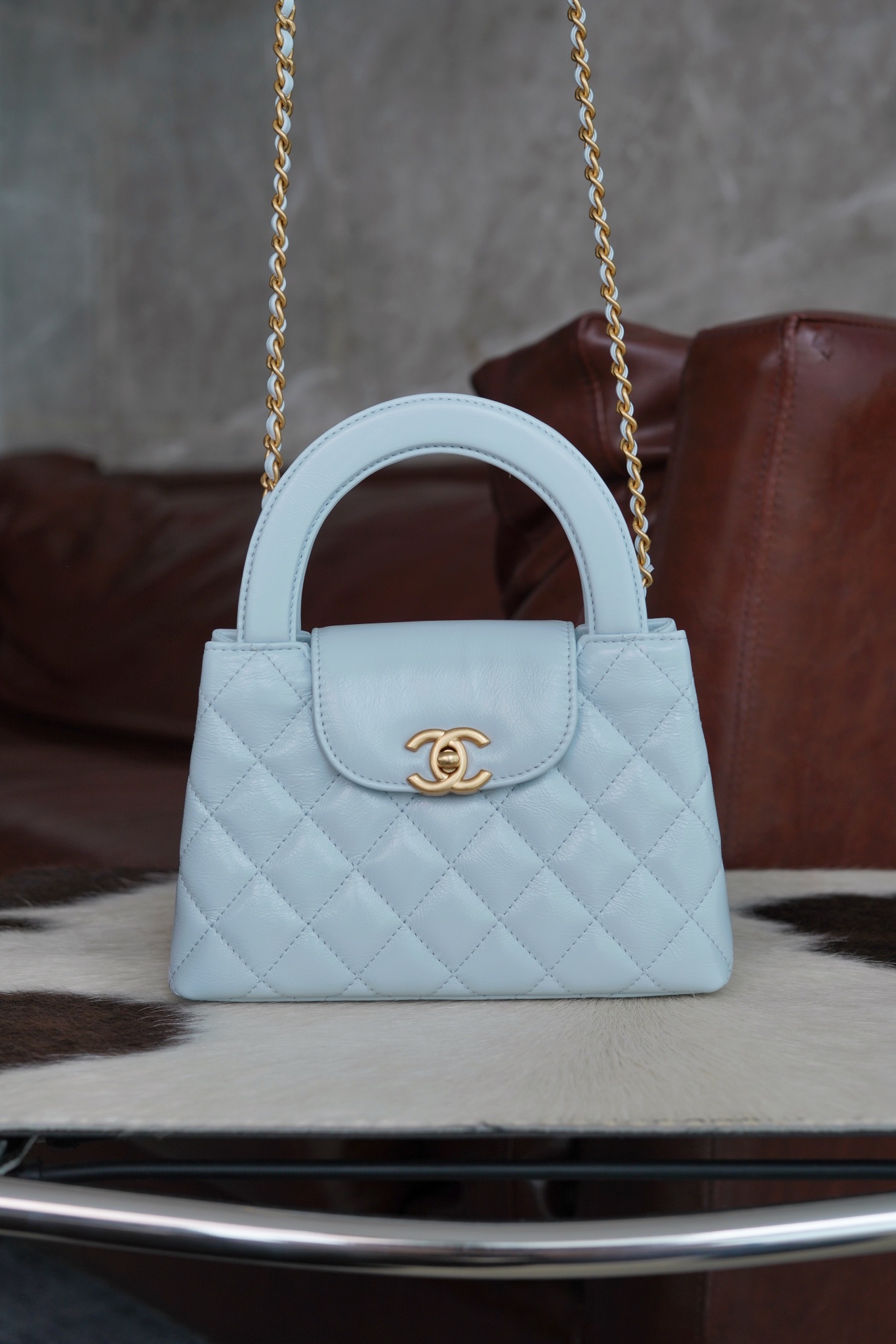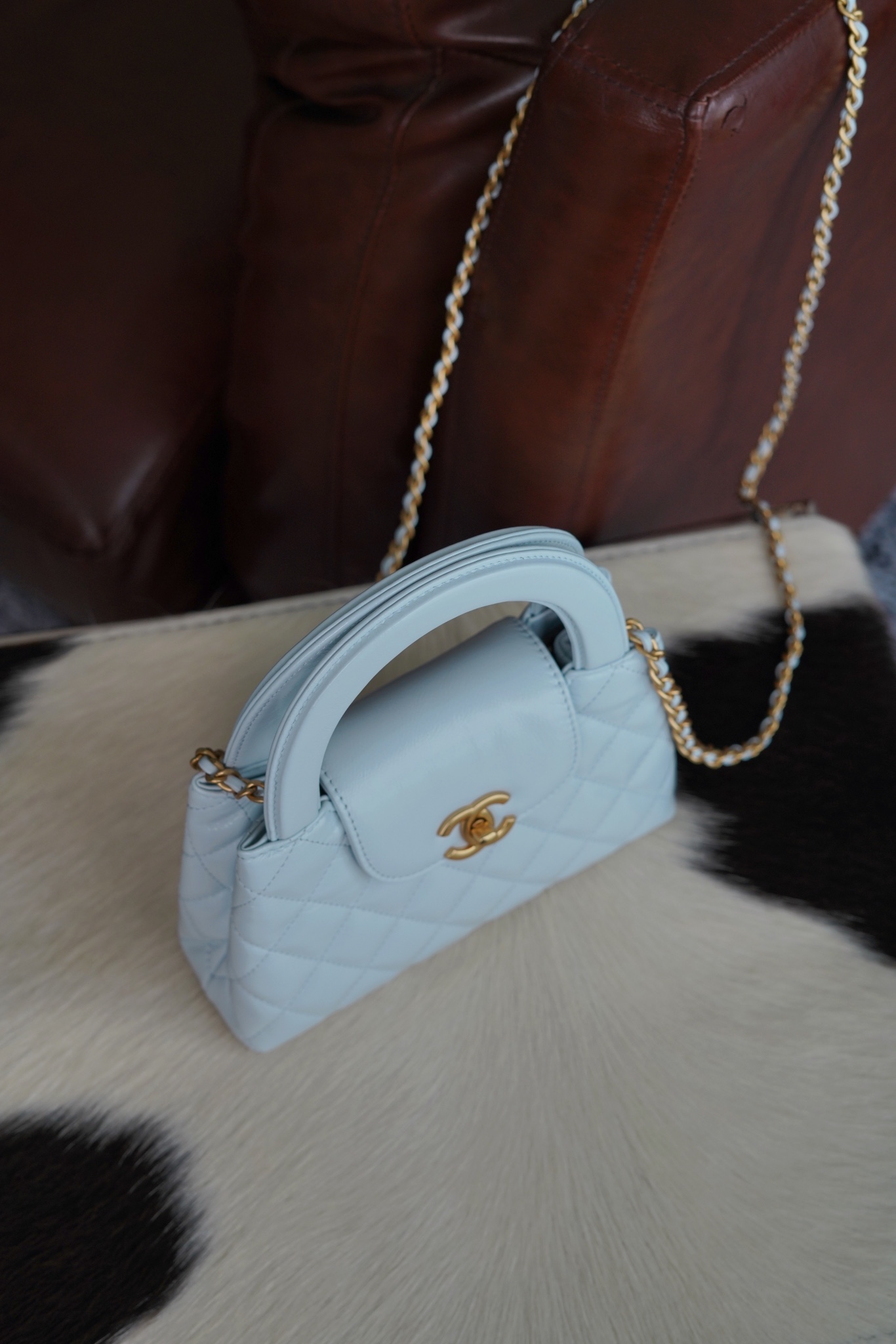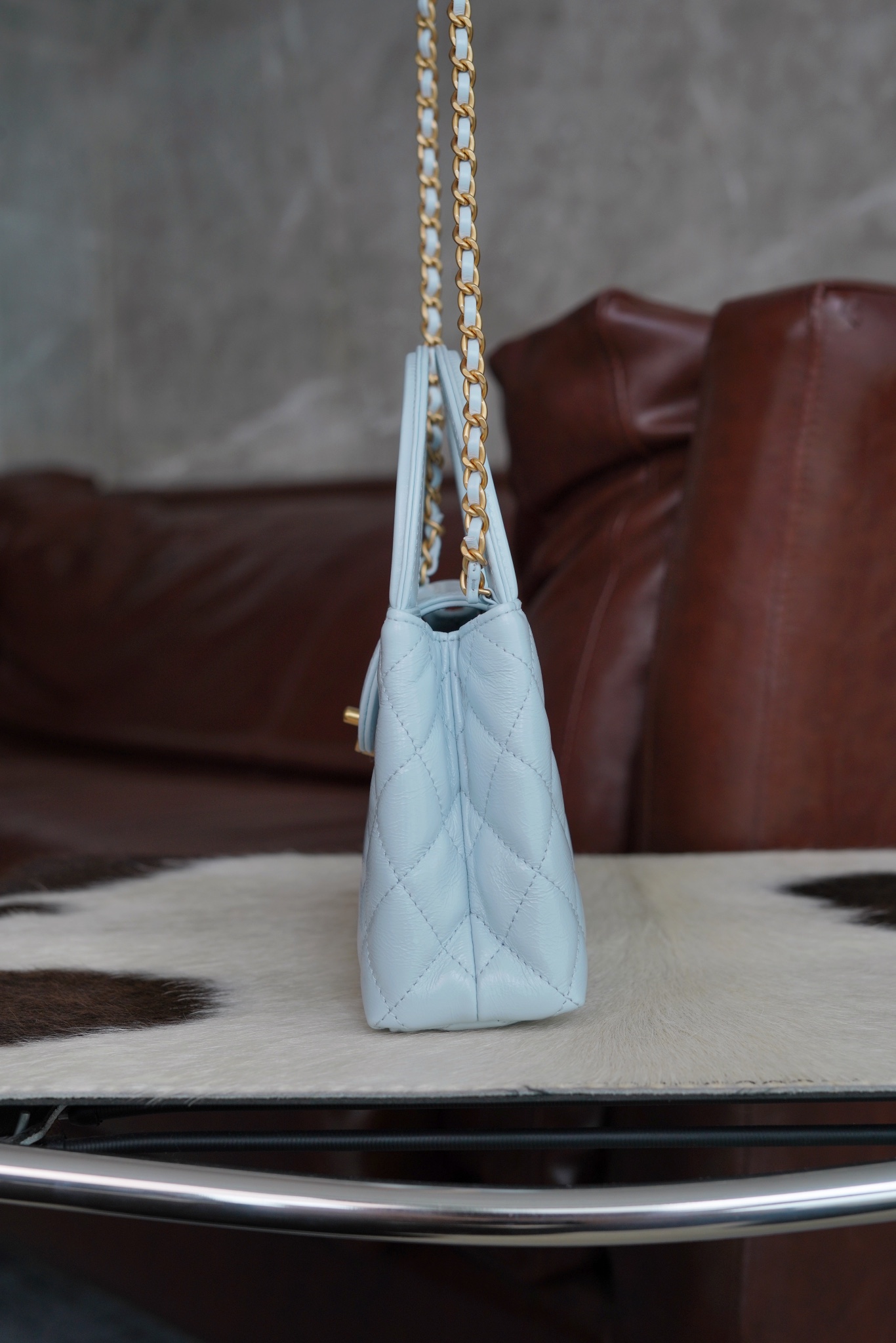 • [JD] 샤넬 금장 24S 켈리 핸들 숄더백 연 스카이 블루 라지 13*19*7cm CHANEL