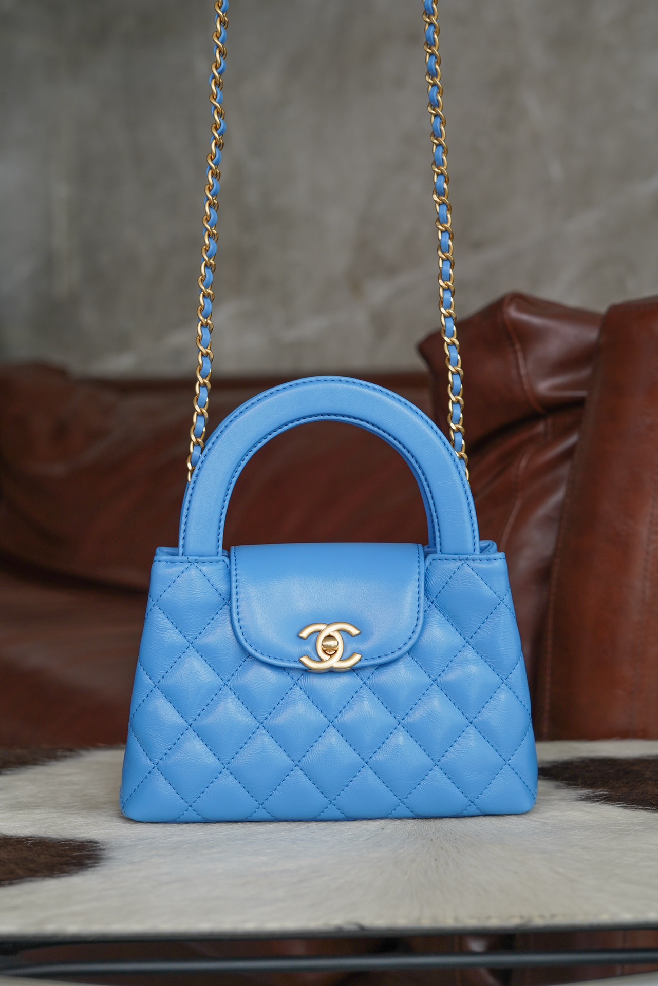 • [JD] 샤넬 금장 24P 켈리 핸들 숄더백 블루 라지 13*19*7cm CHANEL
