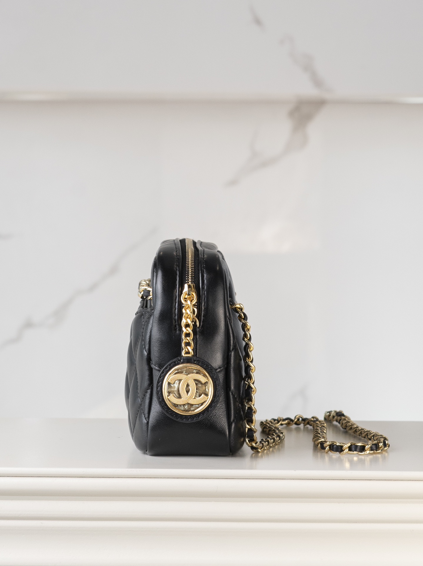 • [JD] 샤넬 24K 골드 메달 지퍼백 스몰 12*18*7cm 블랙 CHANEL