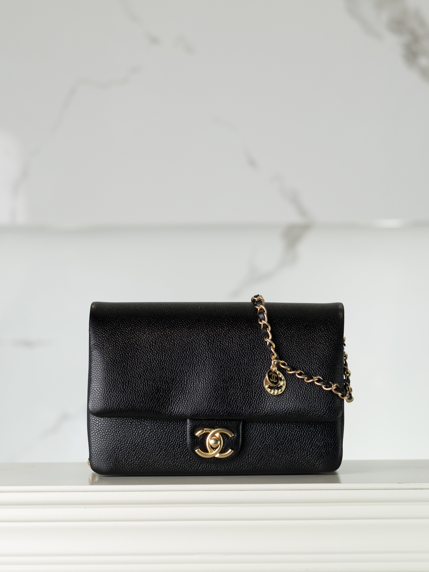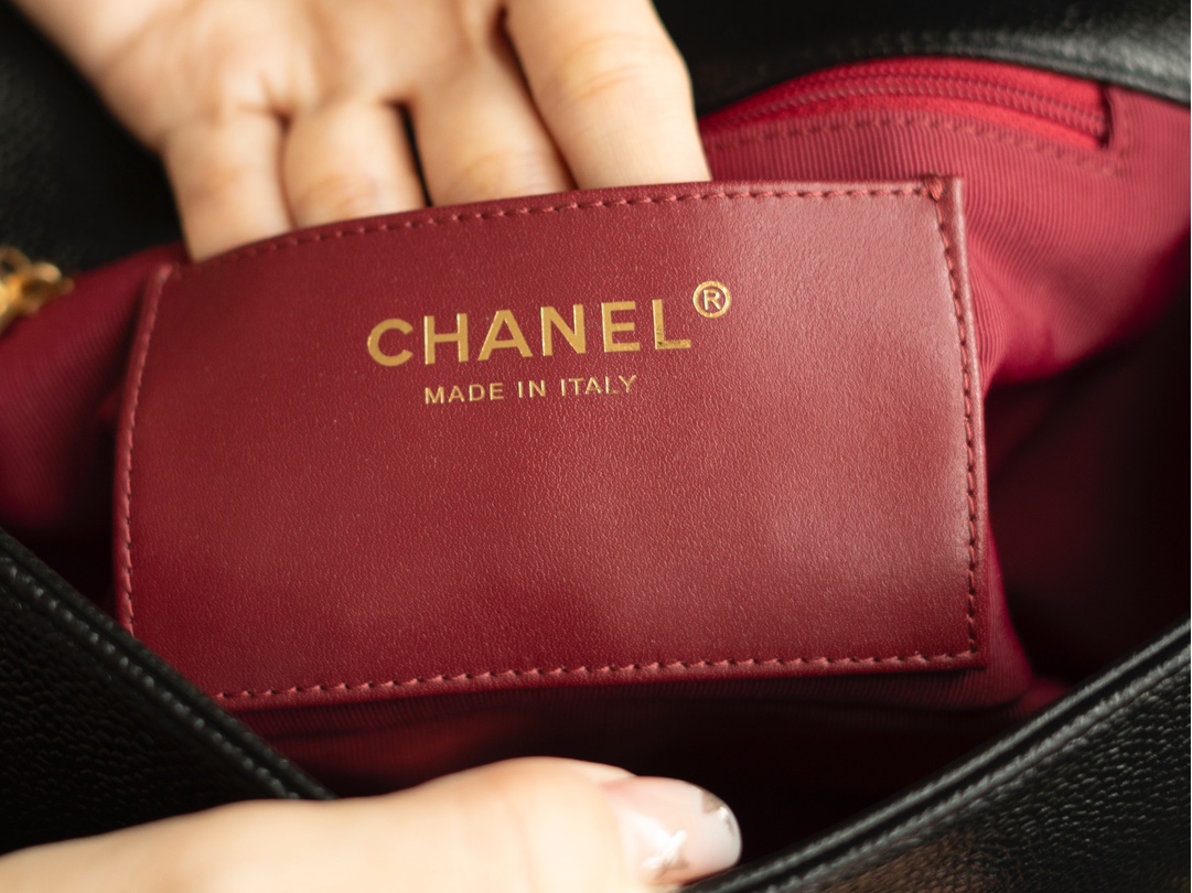 • [JD] 샤넬 24K 캐비어 금장 배이직 플랩백 미디엄 13*22*7cm 블랙 CHANEL