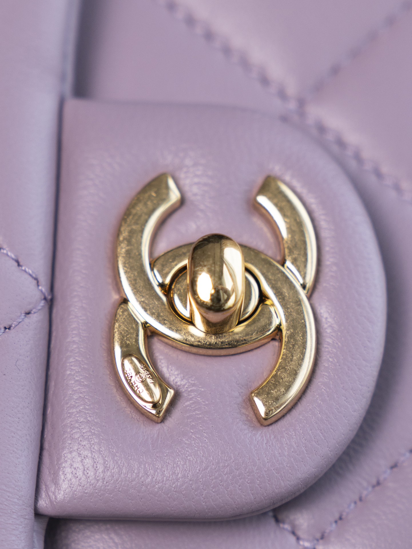 • [JD] 샤넬 금장 24K 체인 퀼팅 숄더백 라이트 퍼플 12*16*5cm CHANEL