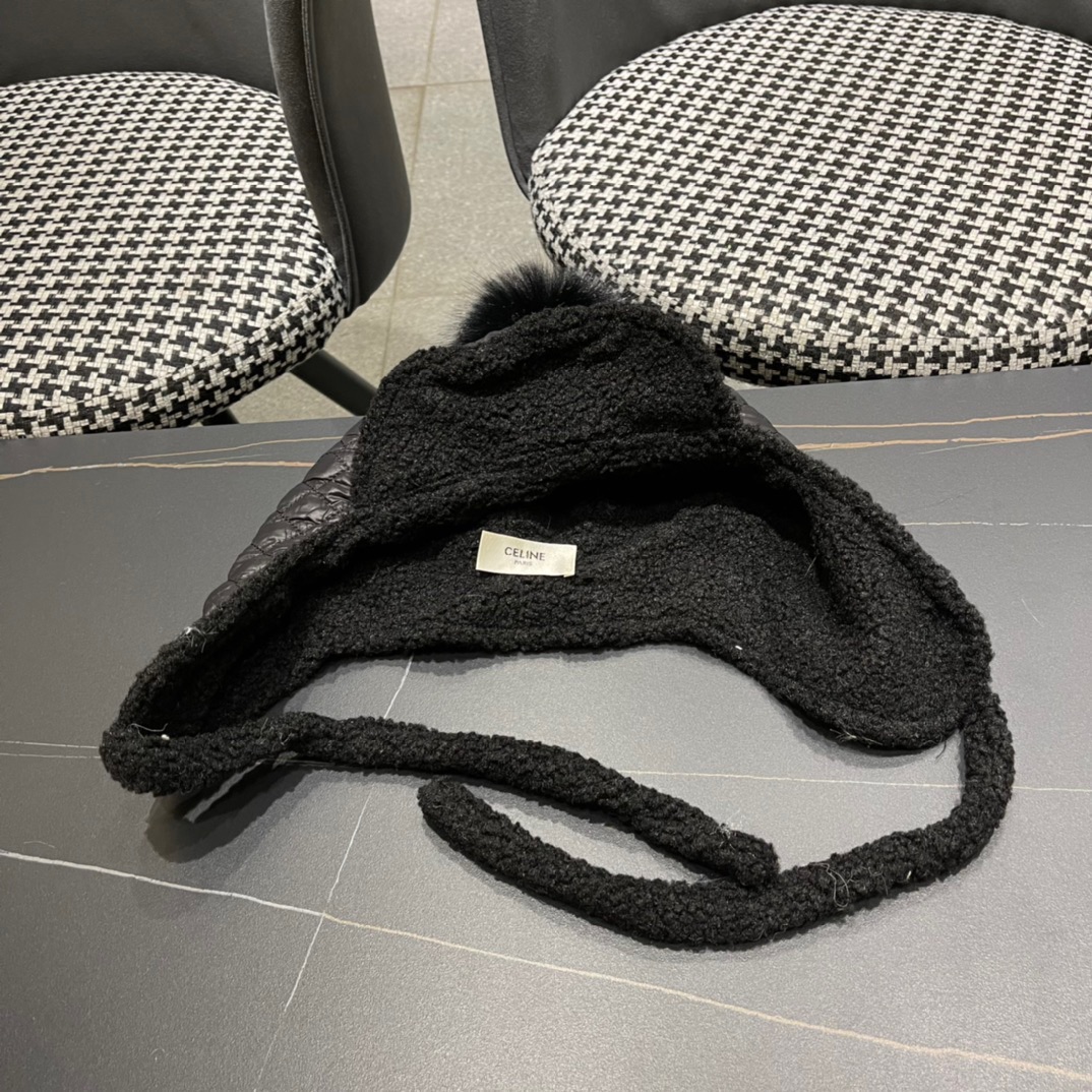 • AGG 셀린느 겨울 퀼팅 모자 블랙 Celine