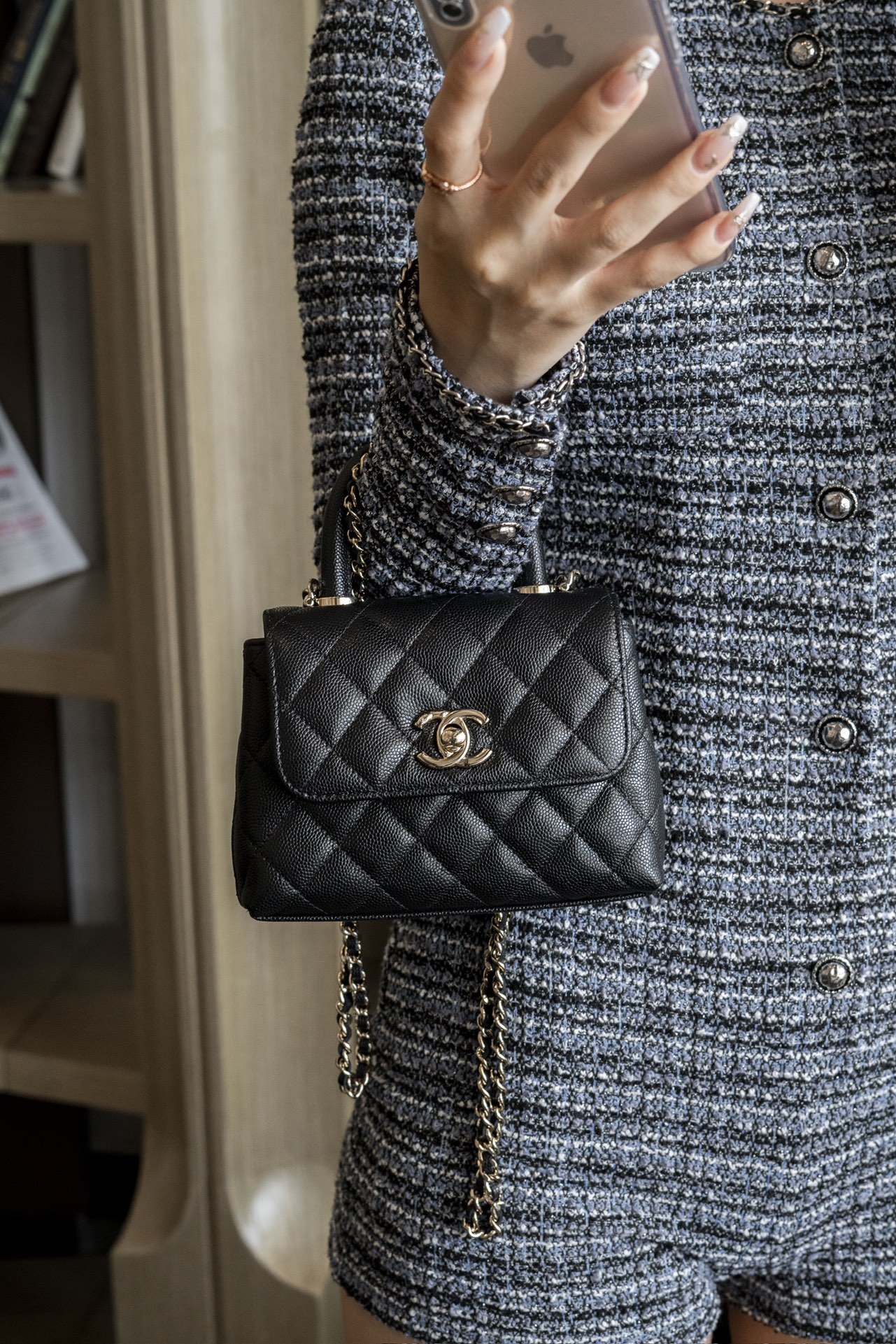 • [JD] 샤넬 24K 금장 캐비어 코코핸들백 미니 블랙 11.5*14.5*5.5cm CHANEL