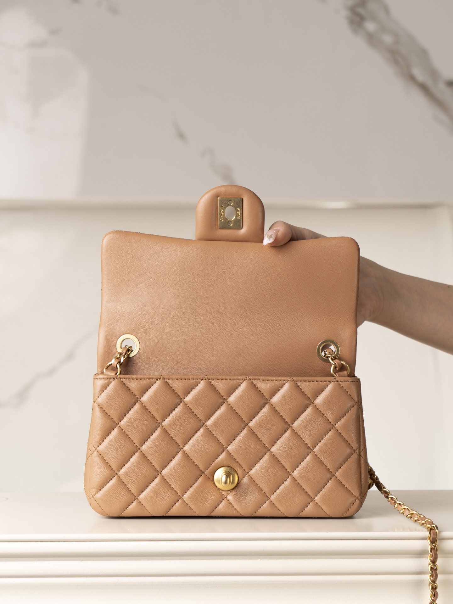 • [JD] 샤넬 플랩백 램스킨 골드 메탈 볼 24K CF 누드 13*20*7cm