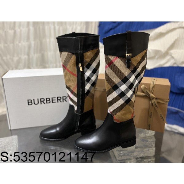[152] 버버리 체크 이음 레더 슬림 롱부츠 블랙 burberry