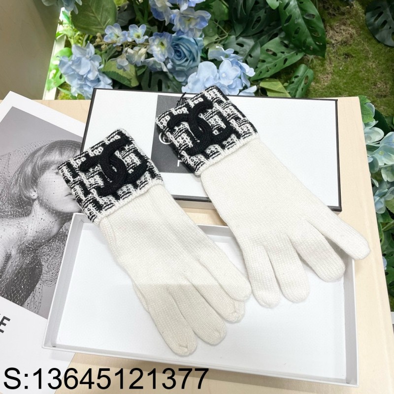 • AGG 샤넬 양털 CC로고 이음 장갑 화이트 CHANEL